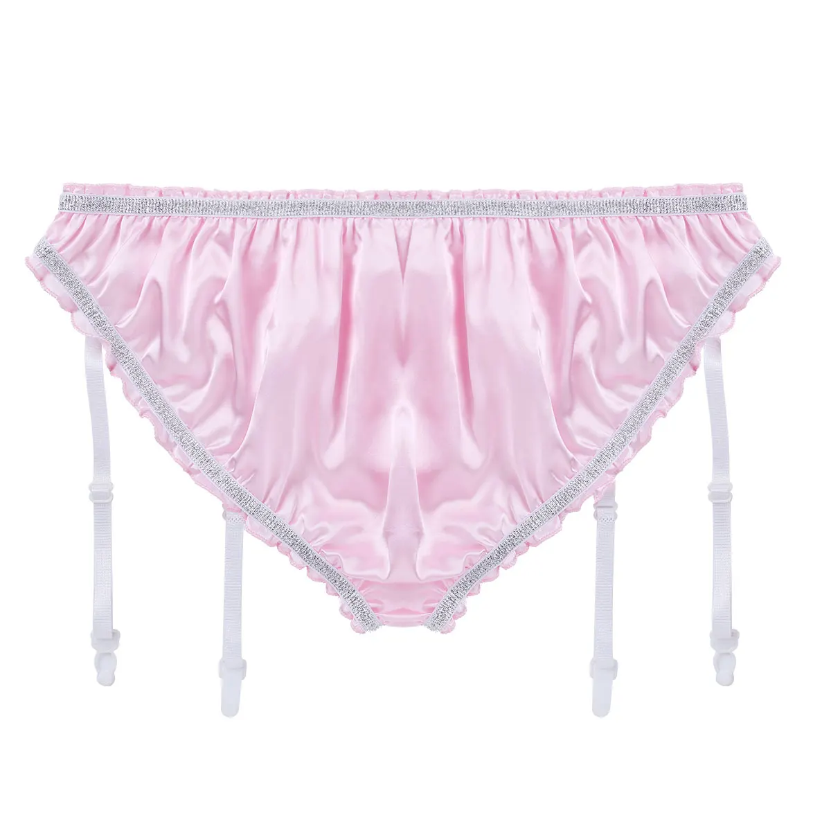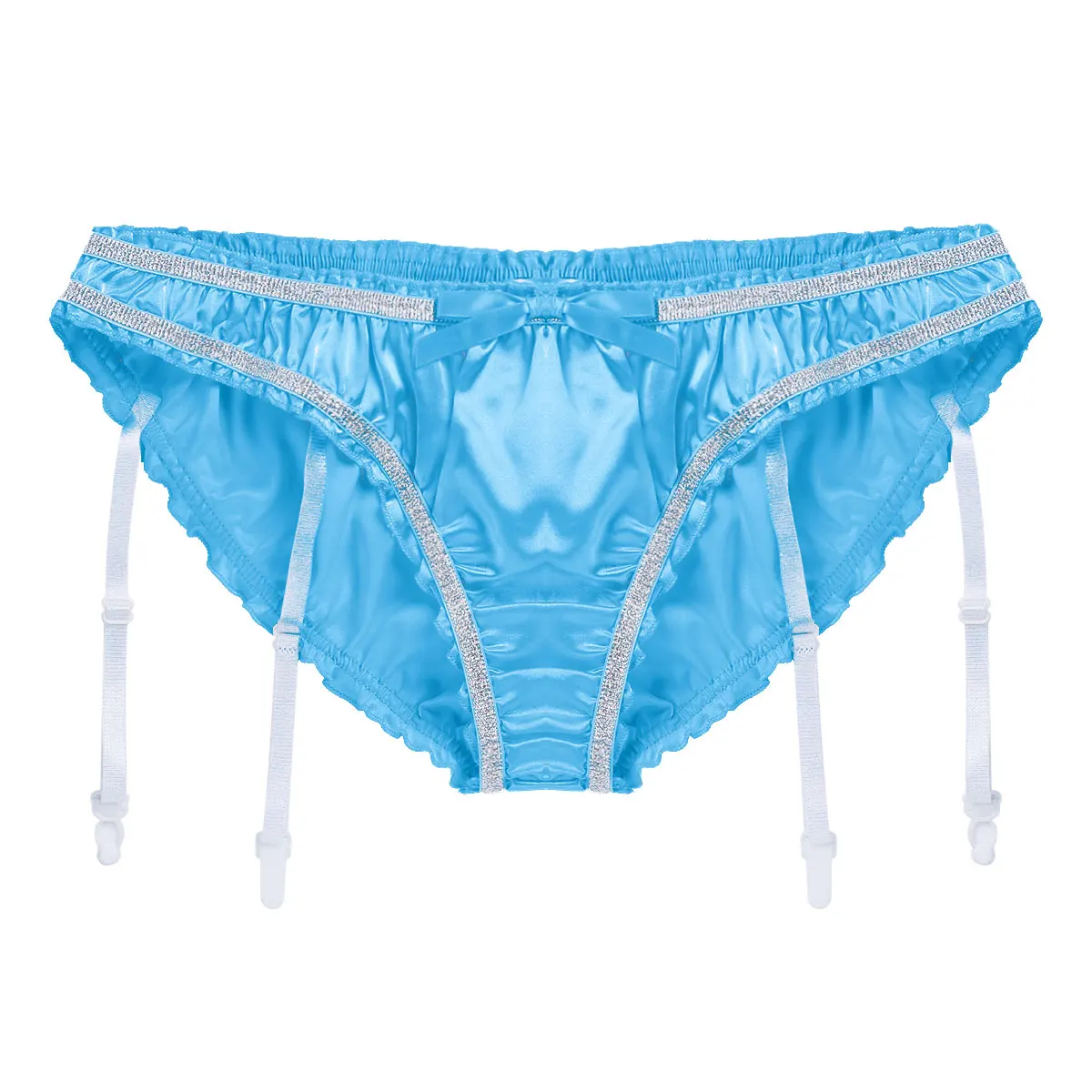 Трусы-бикини мужские атласные, с подвязками, эротический бандаж