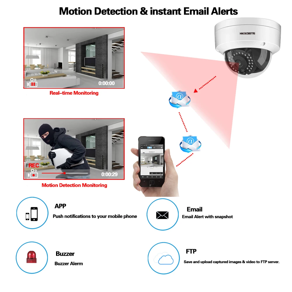 Эта система предназначена для отправки оповещения по электронной почте при обнаружении любого движения и позволяет записывать только при обнаружении движения.Можно настроить область, которую вы хотите контролировать, когда она срабатывает, она отправит сообщение на вашу электронную почту, вы можете получить информацию из первых рук, независимо от того, когда и где вы находитесь.