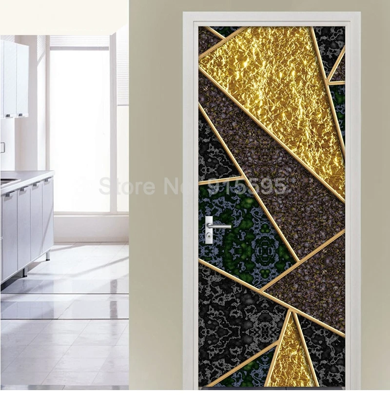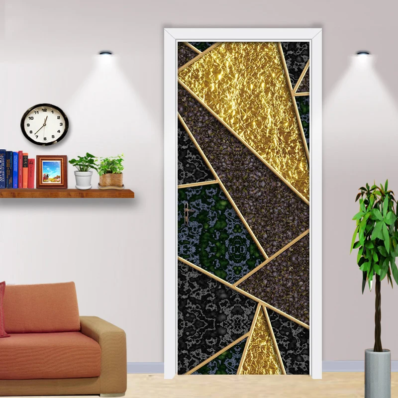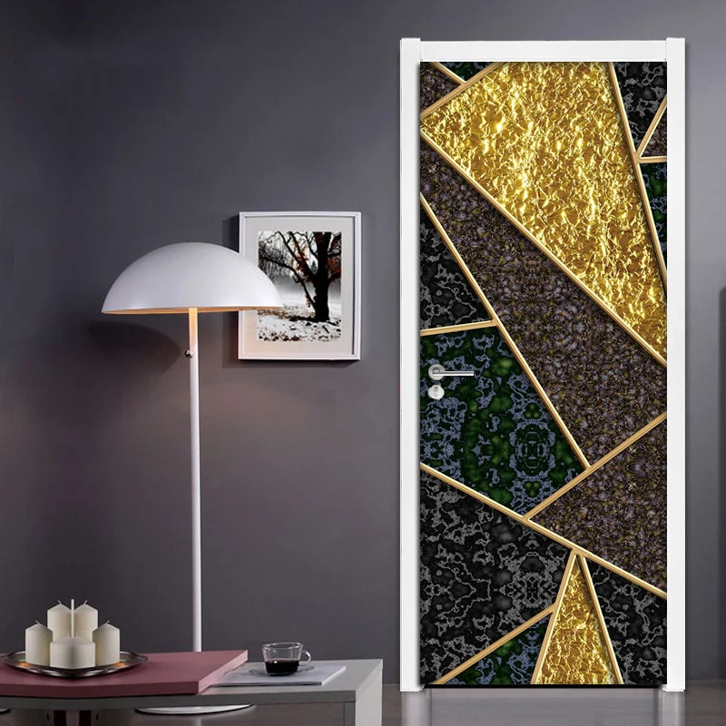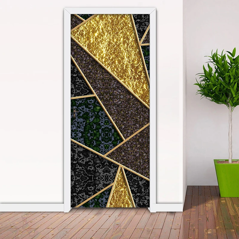 3D мраморная наклейка на дверь с геометрическим узором, водонепроницаемые самоклеящиеся Настенные обои, наклейка на дверь гостиной, спальни, домашний декор