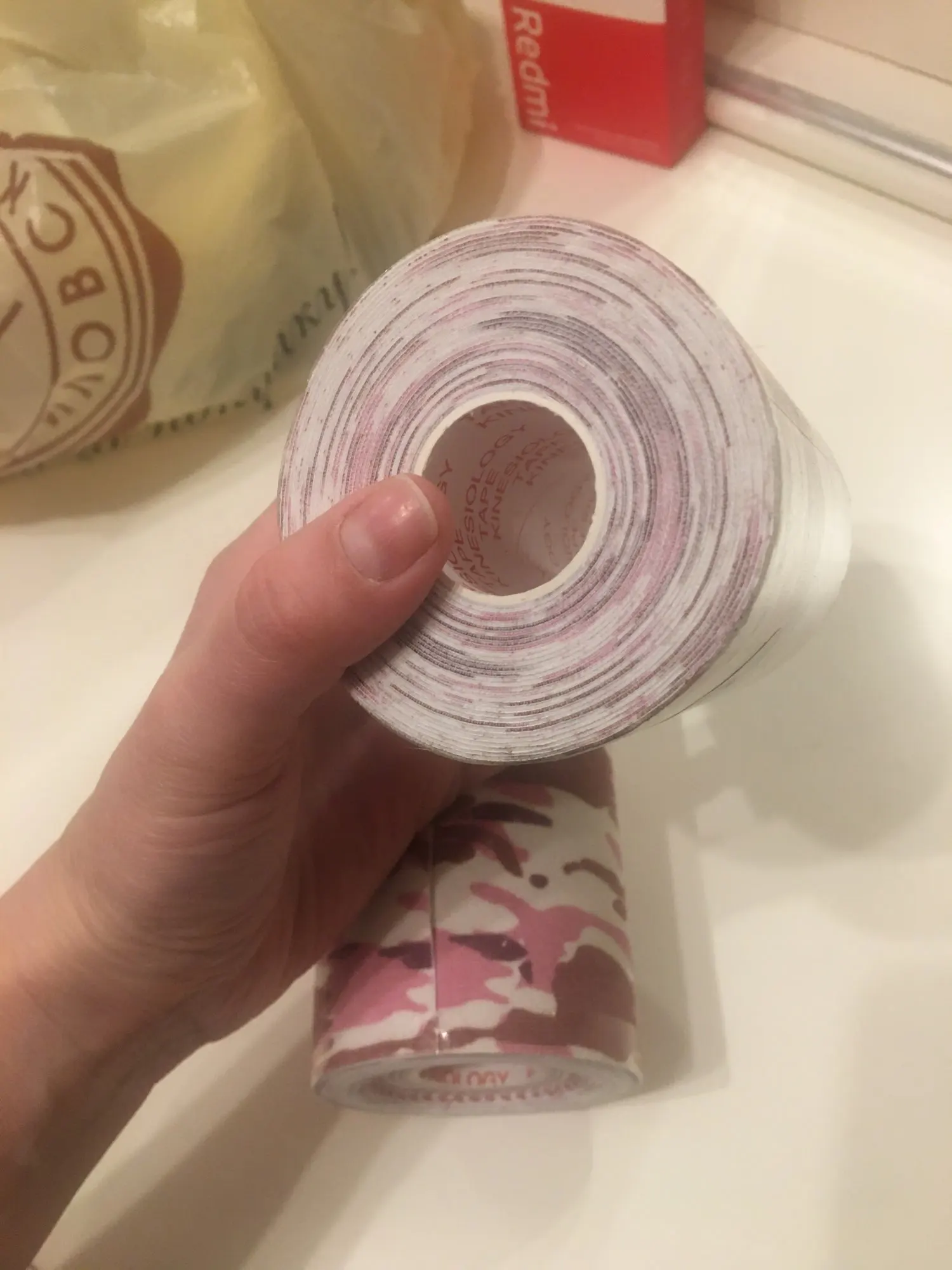 отличный тейп, хорошо клеится, не оставляет следов клея на коже. рекомендую.