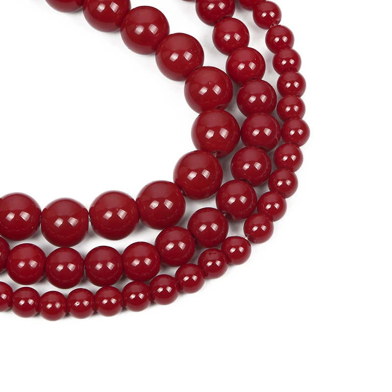 Бусины из натурального камня, коралловый красный стеклянный круглый бисер россыпью для изготовления ювелирных изделий, рукоделия, браслетов, аксессуаров, бусины 4-12 мм