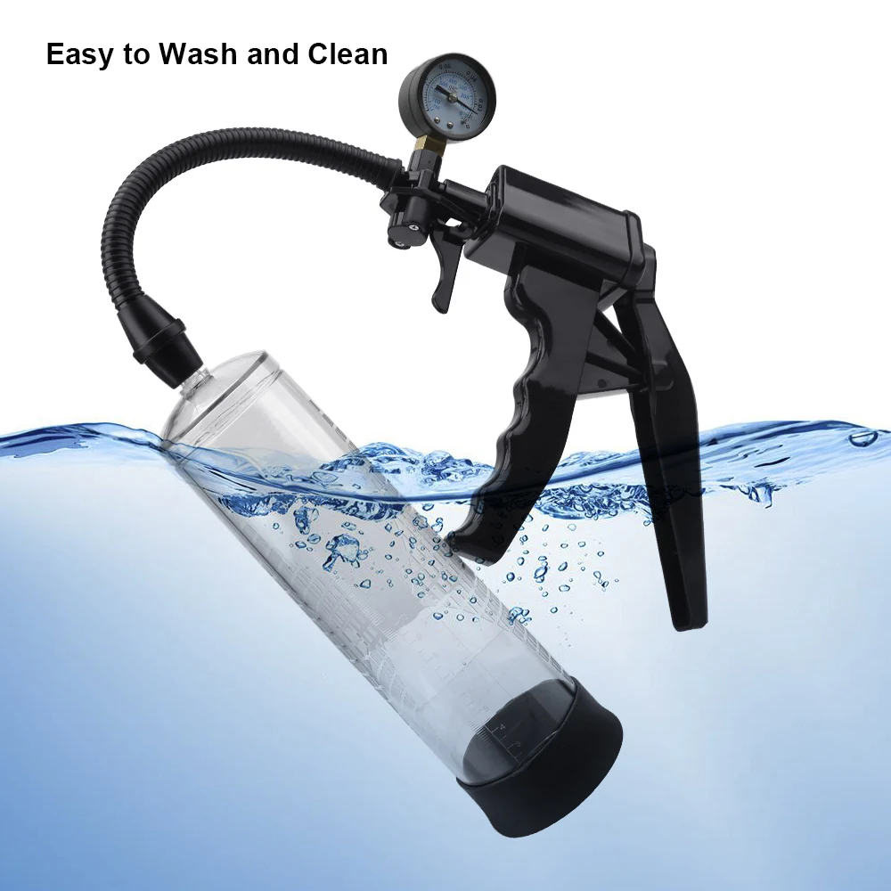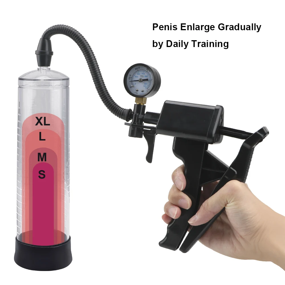 Цилиндр крепится к мягкой резиновой втулке, просто поместите этот рукав поверх вашего пениса, а затем равномерно прокачивайте вручную.