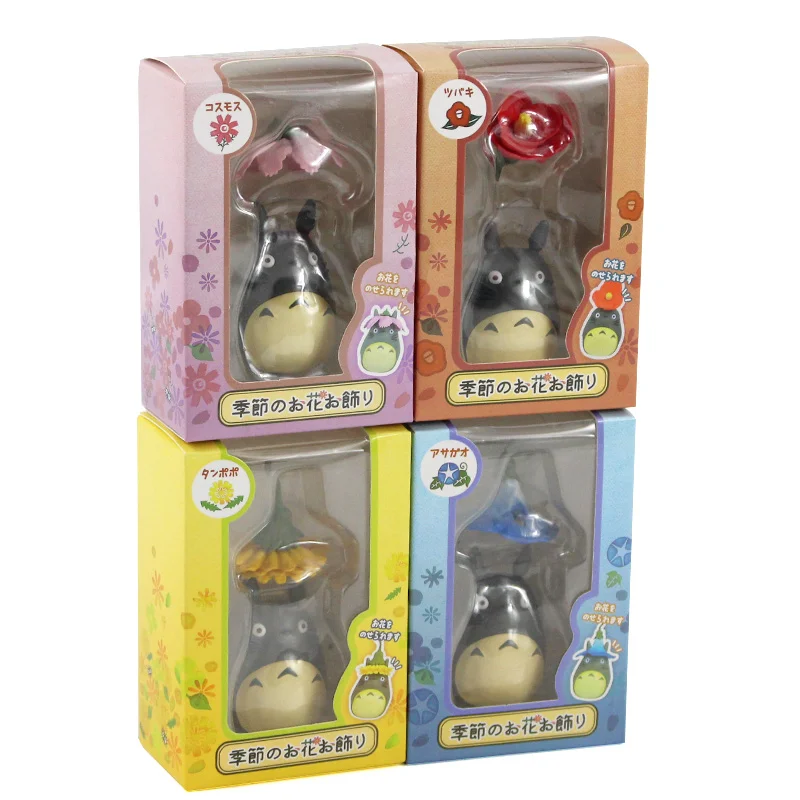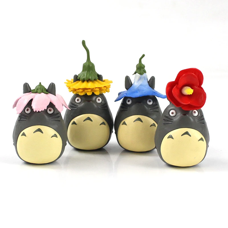 6-9 см 4 шт.лот Studio Ghibli с изображением героя мультфильма Мой сосед Тоторо фигурку игрушки Хаяо миядзяки; С цветочным узором Мой сосед Тоторо садоводства домашнего PVC Моделя с хорошим спросом куклы