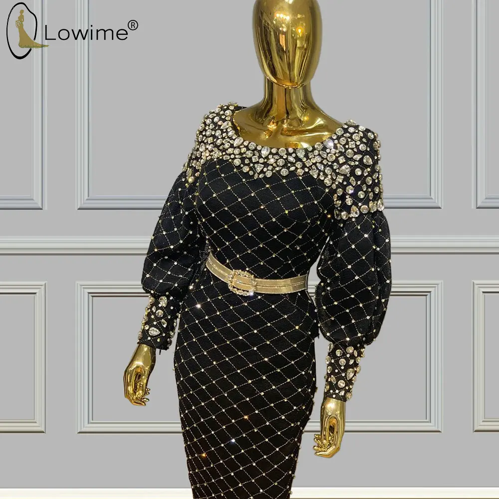 Мусульманское Черное вечернее платье-Русалка длиной до щиколотки, платье с длинным рукавом и бусинами, бальное платье для выпускного вечера, платье для вечеринки