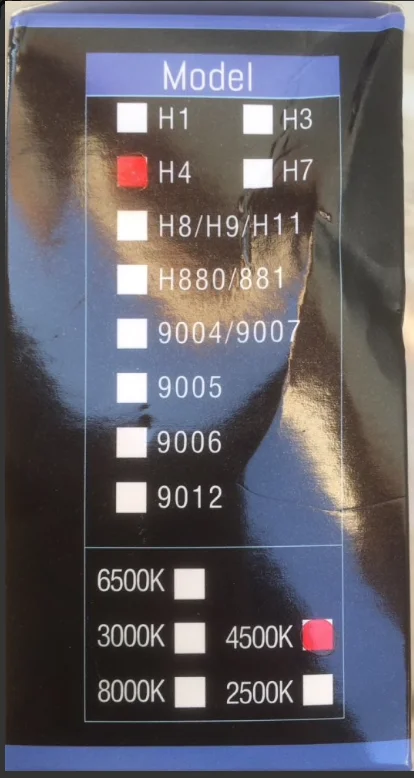 Страна: SA Color: Black Emitting Color: 4300K Socket Type: H4/9003/HB2 Hi/Lo Доставка: Direct 13.10.2020