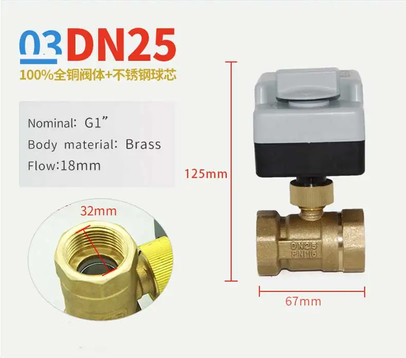 Электропривод шарового клапана, 220 В перем. Тока, DN15, DN20, DN25, 2-ходовой, 3-проводной, латунный, с электроприводом, 220 В, с ручным переключателем