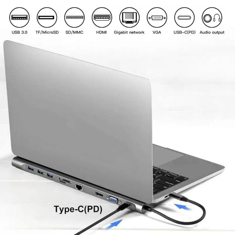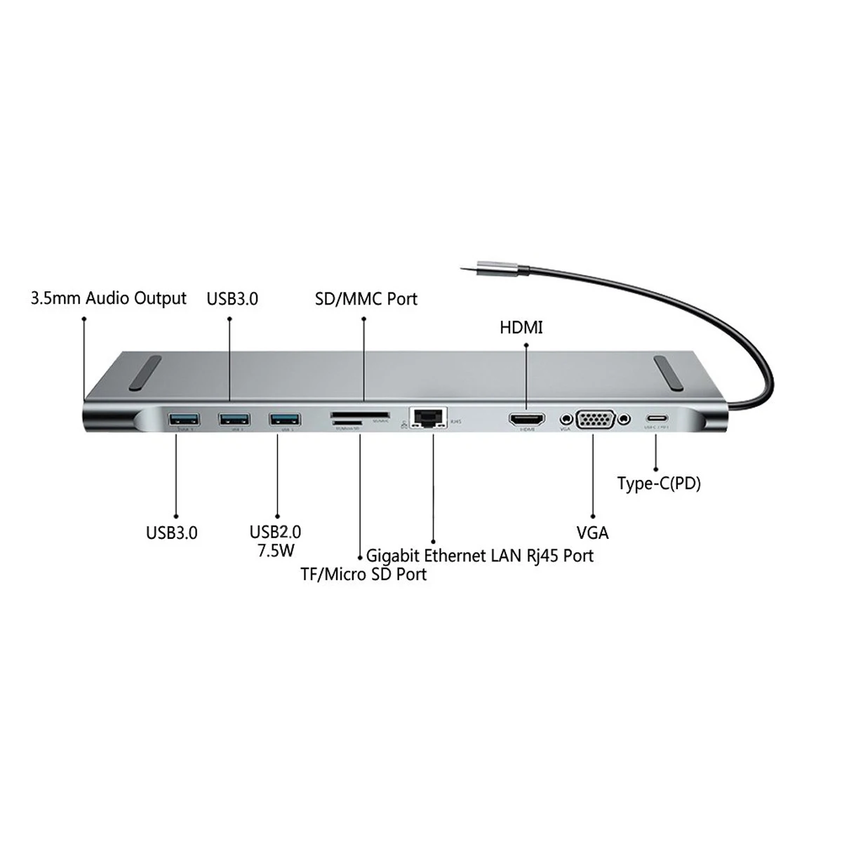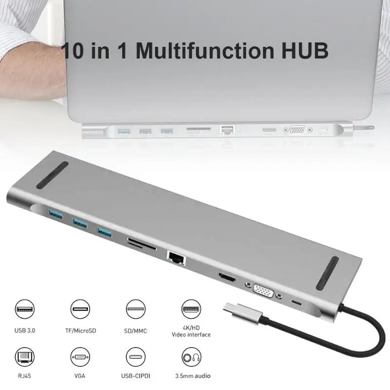 10 в 1 USB концентратор с 4K док-станция для Тип C RJ45 Gigabit Lan PD 100W Мощность поставить thunderbolt 3 Для iMac воздушный surface book