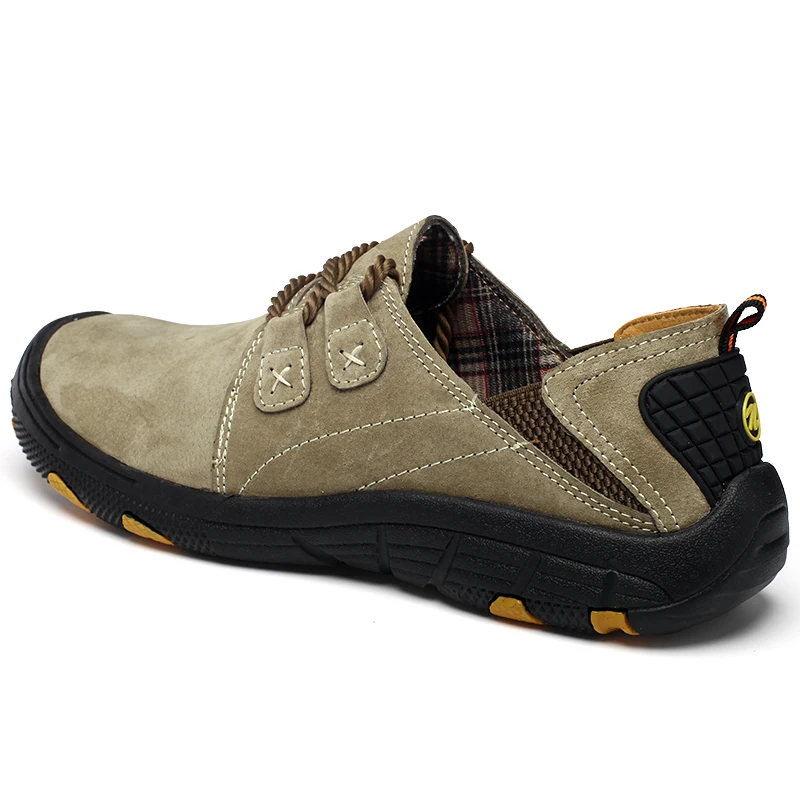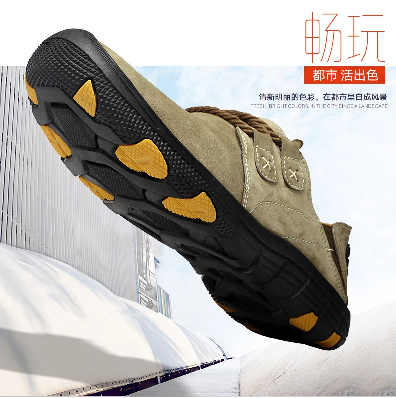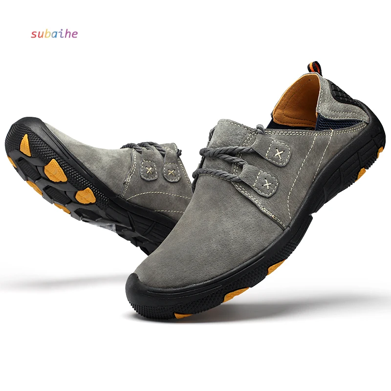 Мужские повседневные кроссовки, Весенняя Нескользящая спортивная обувь из воловьей кожи, первый слой кожи, резиновая, износостойкая теплоизоляция