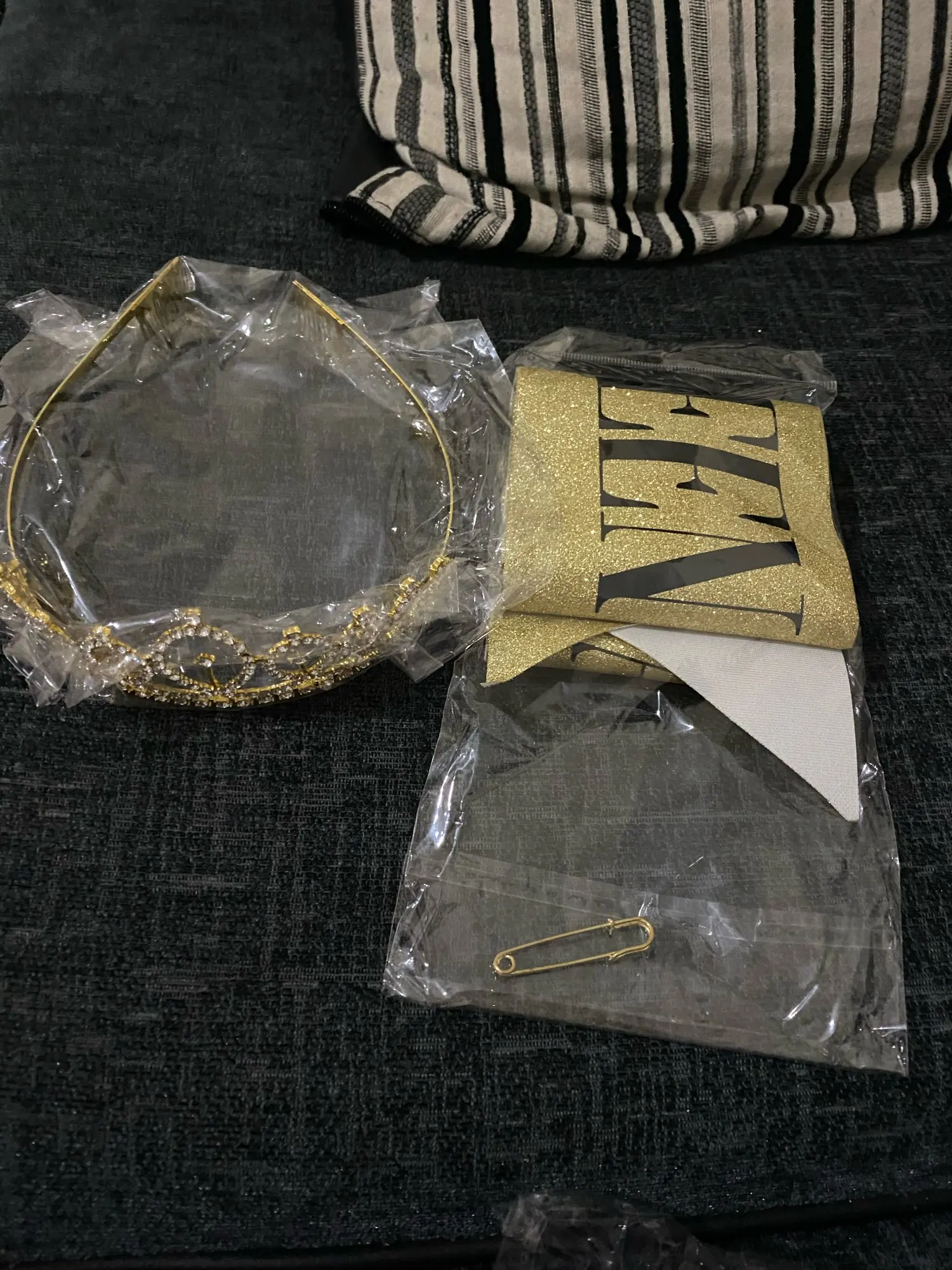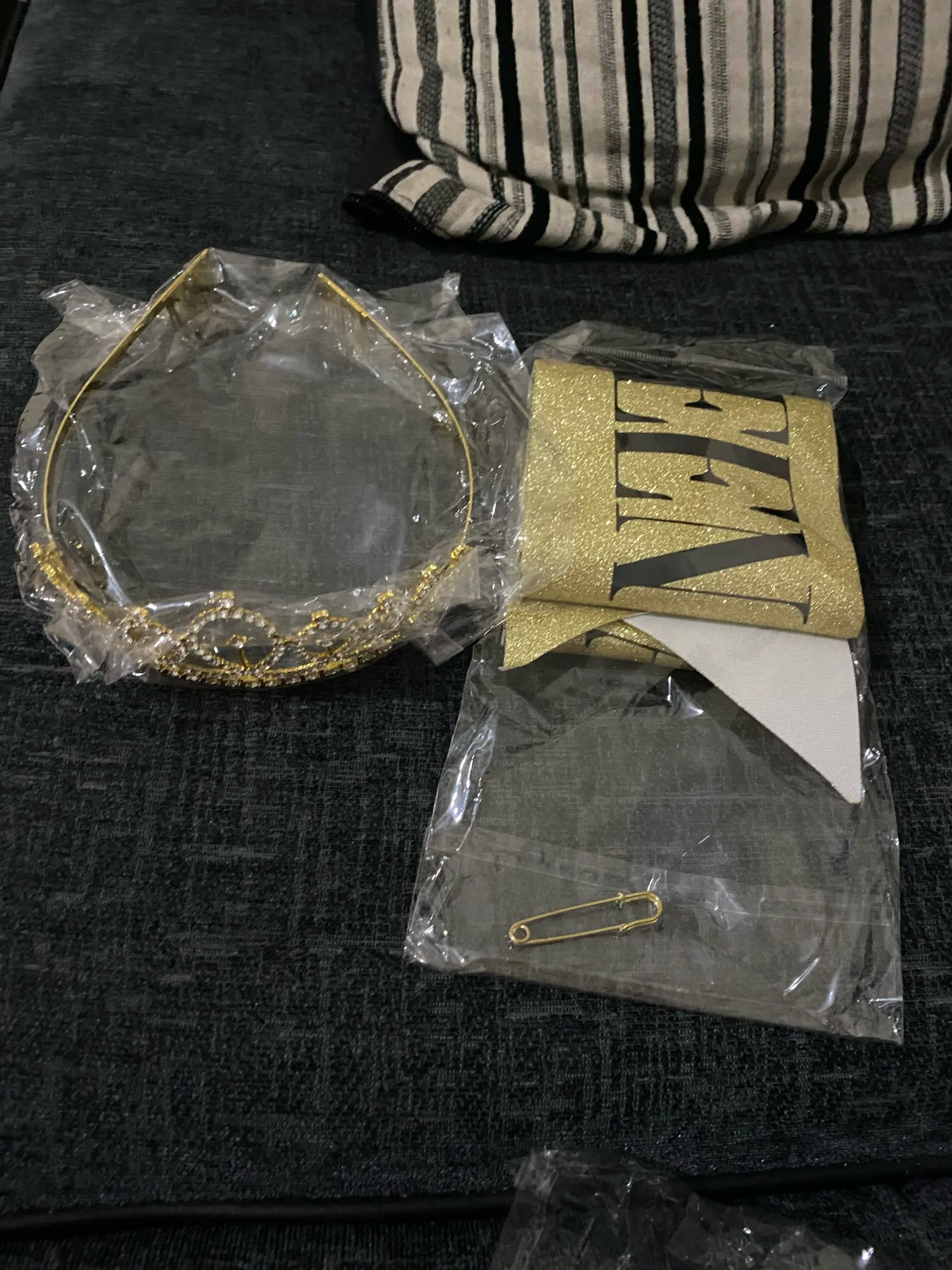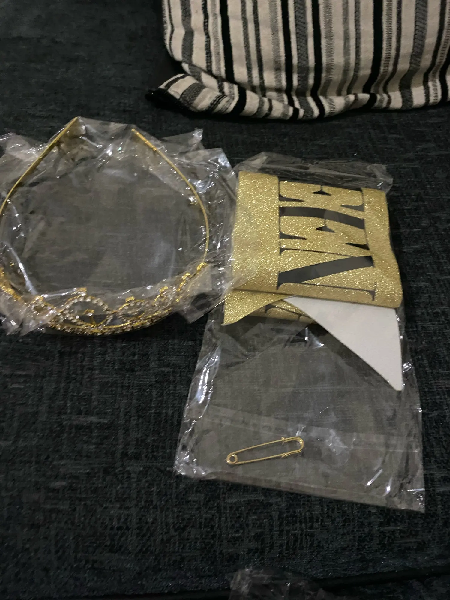 Корона вообще огонь!! Тяжеленькая, стразы приклеены очень ровно. Лента тоже сделана красиво. Единственное, что нужно будет как-то прогладить накануне «коронации» заломы на ленте))