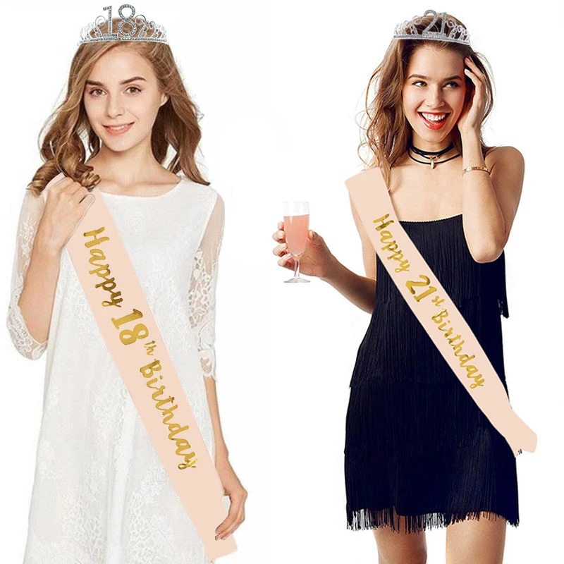 Украшение для дня рождения 18 21 30 40 50 атласный пояс из розового золота Хрустальная корона тиара С Днем Рождения принадлежности для юбилейной вечеринки