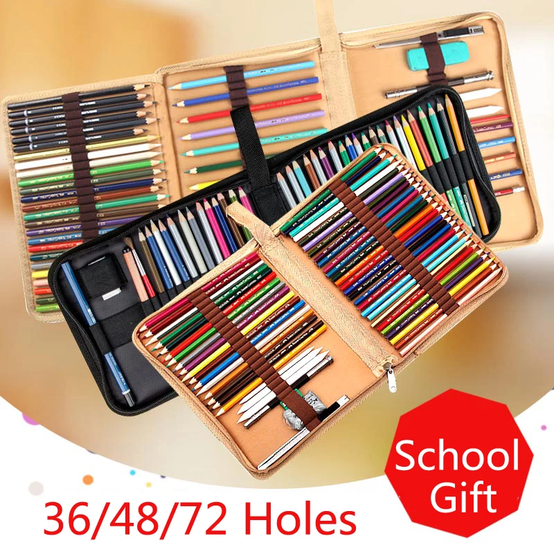 Пенал тканевый на молнии с 72 отверстиями, сплошной Чехол-эскизная ручка для карандашей, 36, 48, милые школьные подарки