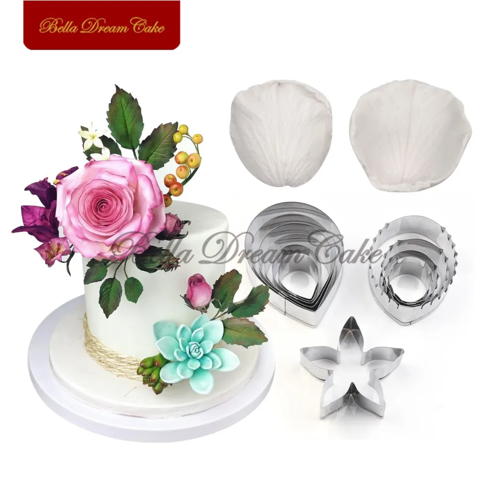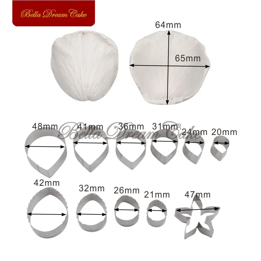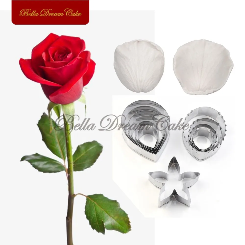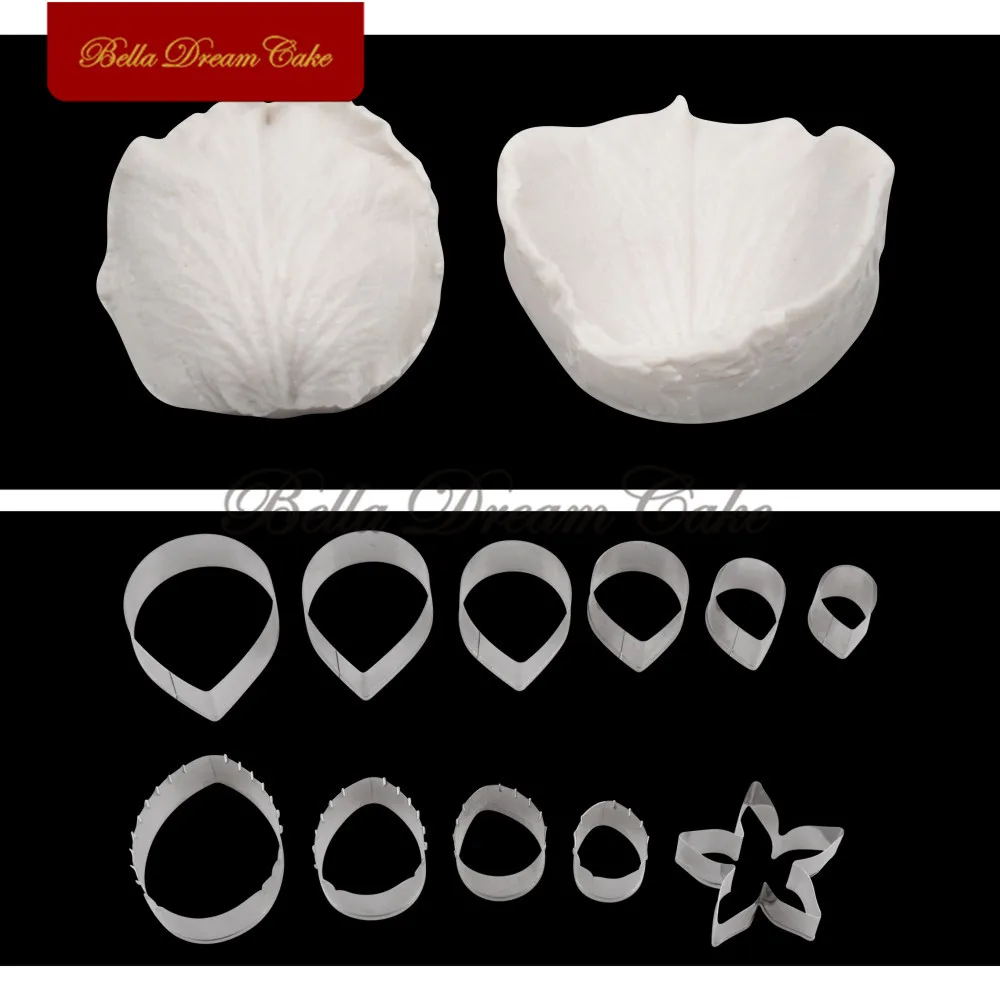 13 шт.компл., лепестки розы и листья, силиконовая форма из нержавеющей стали, резак, форма ручной работы, цветок, помадка, инструмент для украшения тортов