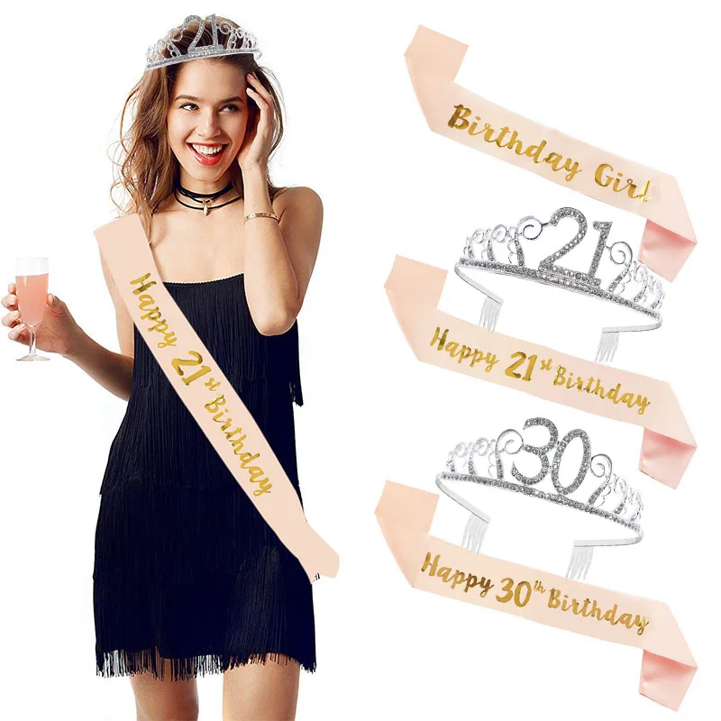 Корона на день рождения 18, 21, 30, 40, 50, 60, для взрослых, для девочек и женщин, атласные ленты, полезные украшения на годовщину