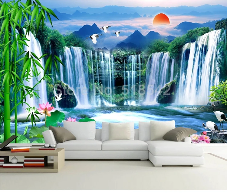 Пользовательские фото обои 3D водопад лес река настенная декоративн...