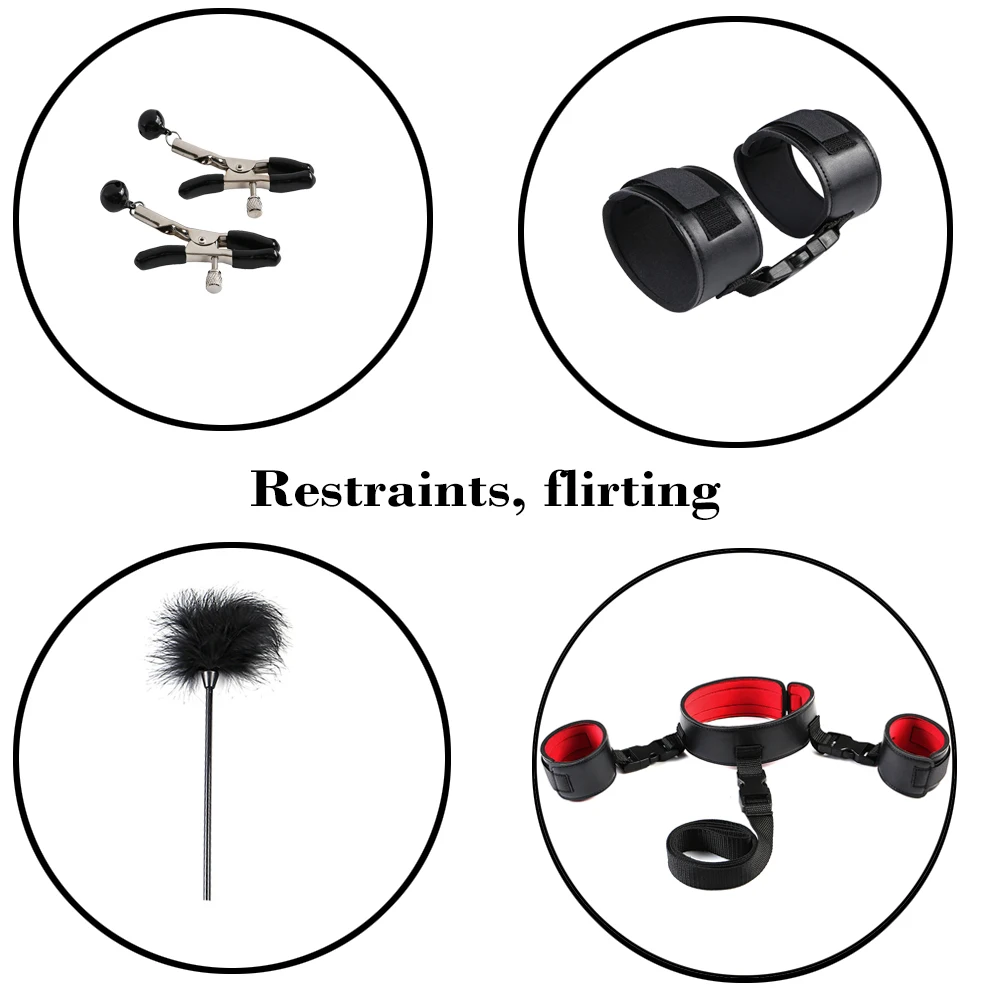 19 шт.компл. эротические игрушки для взрослых, набор для бондажа, наручники, зажимы для сосков, Анальная пробка, плетка, интимные игрушки для пар