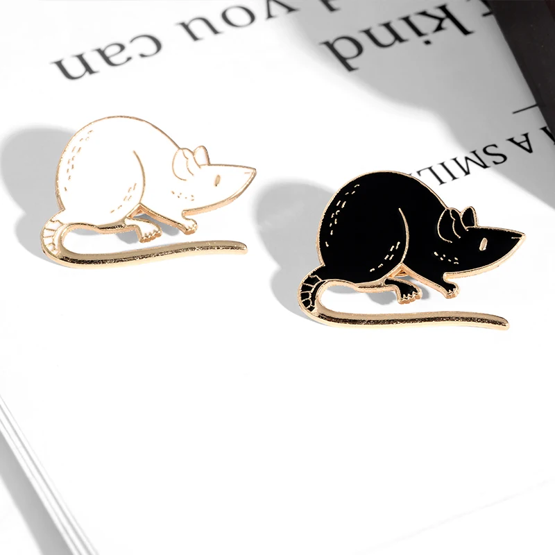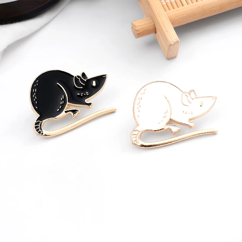 Женские эмалированные броши в виде животных, черные и белые броши в форме мыши, модные значки, подарки для друзей, оптовая продажа