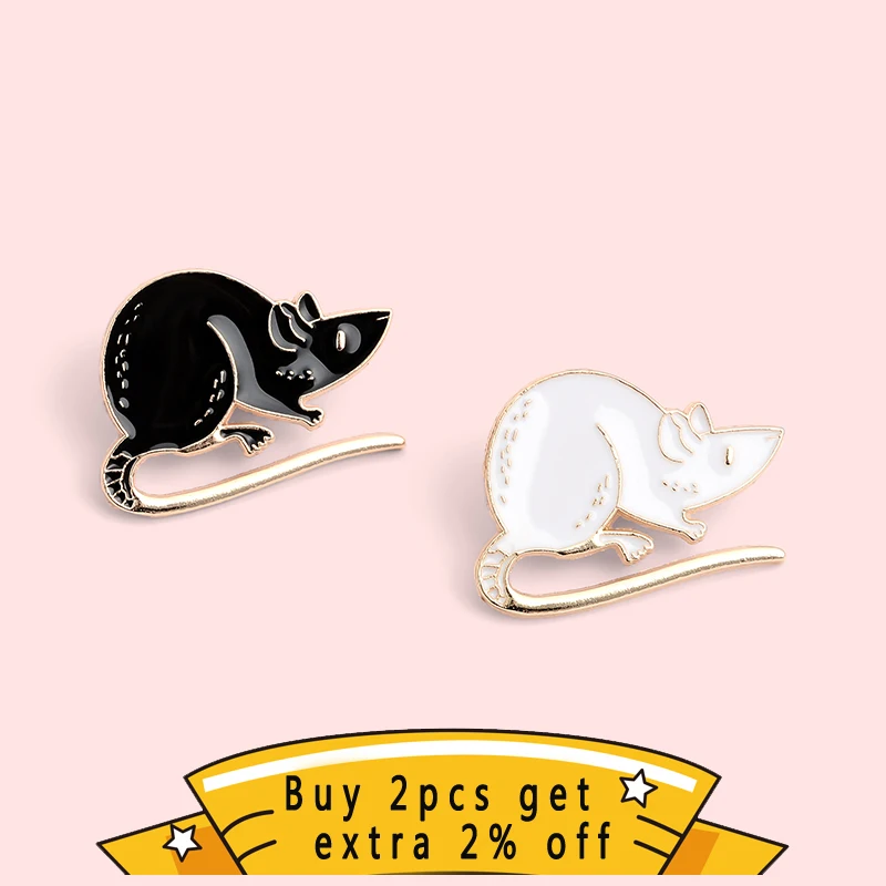 Милый черный, белый цвет крыс эмаль на булавке на заказ броши с изо...