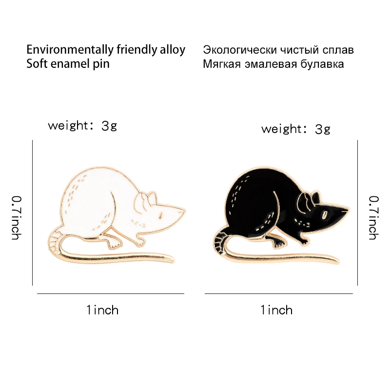 Черно-белая эмалированная заколка с крысами на заказ, броши с изобр...