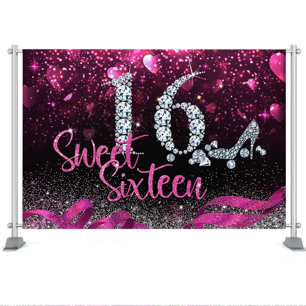 Фон для фотосъемки 16-й день рождения с алмазами на высоком каблуке