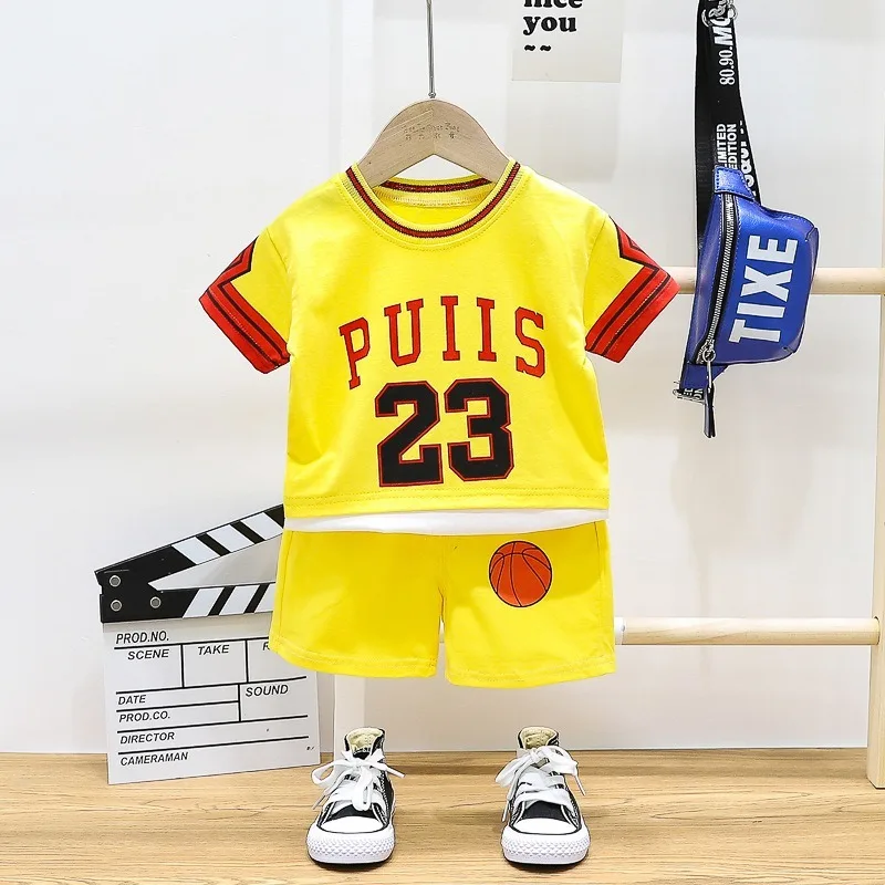 Комплект спортивной одежды для маленьких мальчиков, летний детский спортивный костюм, комплект для баскетбола, детская одежда для девочек и мальчиков 23, 12 штук
