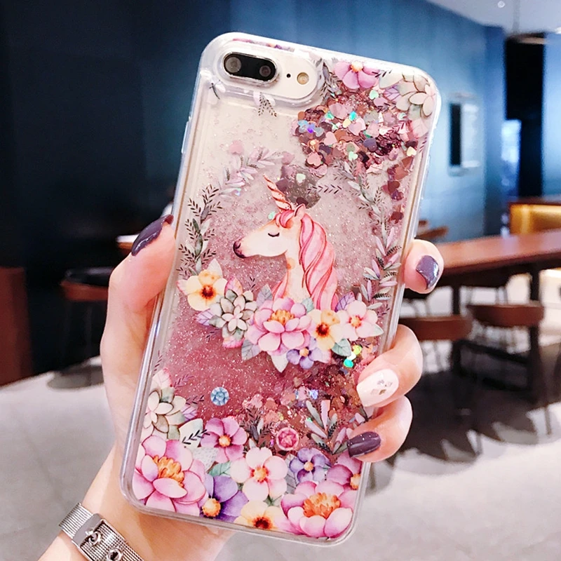 Модный Блестящий розовый чехол с динамической жидкостью и зыбучим песком, мягкий силиконовый чехол на мобильный телефон, чехол-сумка, стильный милый чехол с изображением единорога, цветка, фламинго, прозрачный чехол для телефона, защитный чехол-накладка для телефона
