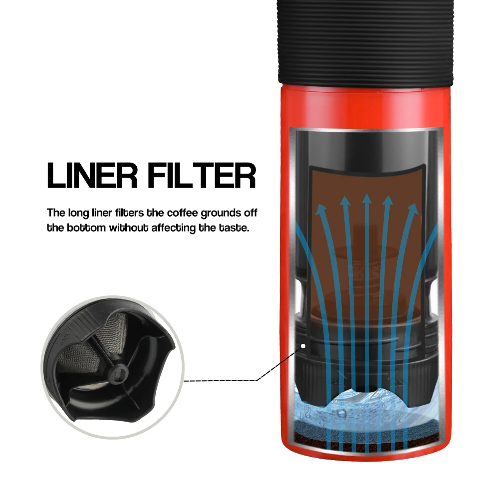 Американская модернизированная портативная кофеварка с французским прессом, 350 мл, кружка с фильтрацией, изоляция воды, чашка для чая и кофе Не соответствует описанию ...... Качественная термокружка , вот только не знаю можно ли пить из нее кипяток ....