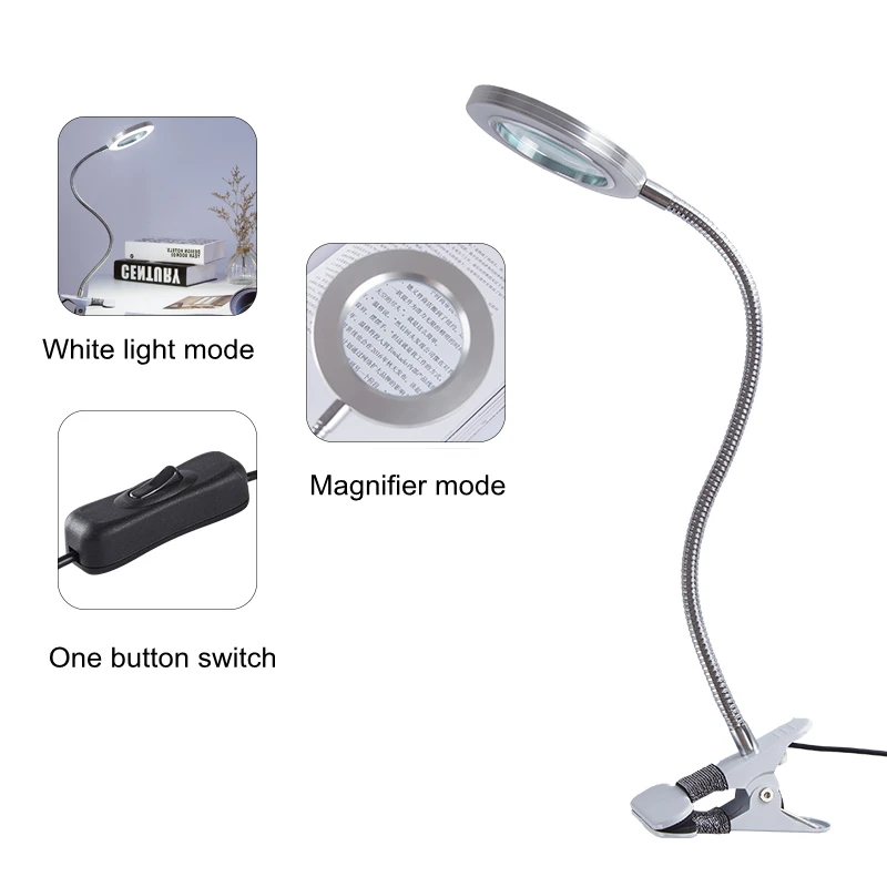 Светодиодный льная Светодиодная лампа с зажимом, увеличительное стекло, лампа с зажимом для защиты глаз, настольная лампа для чтения татуировок, компьютеров и макияжа