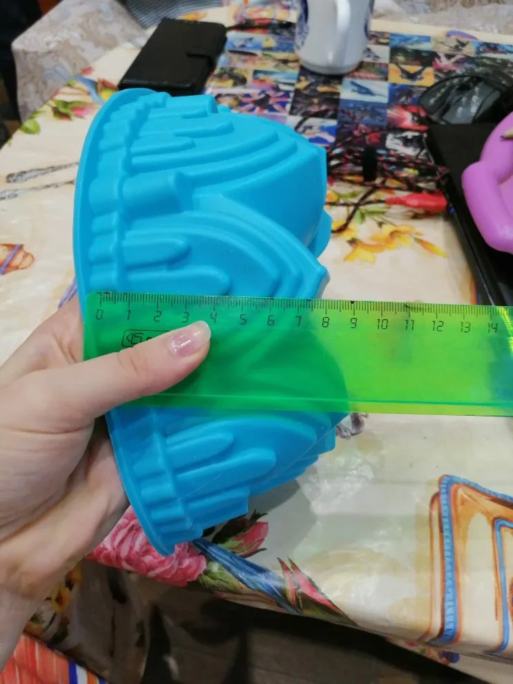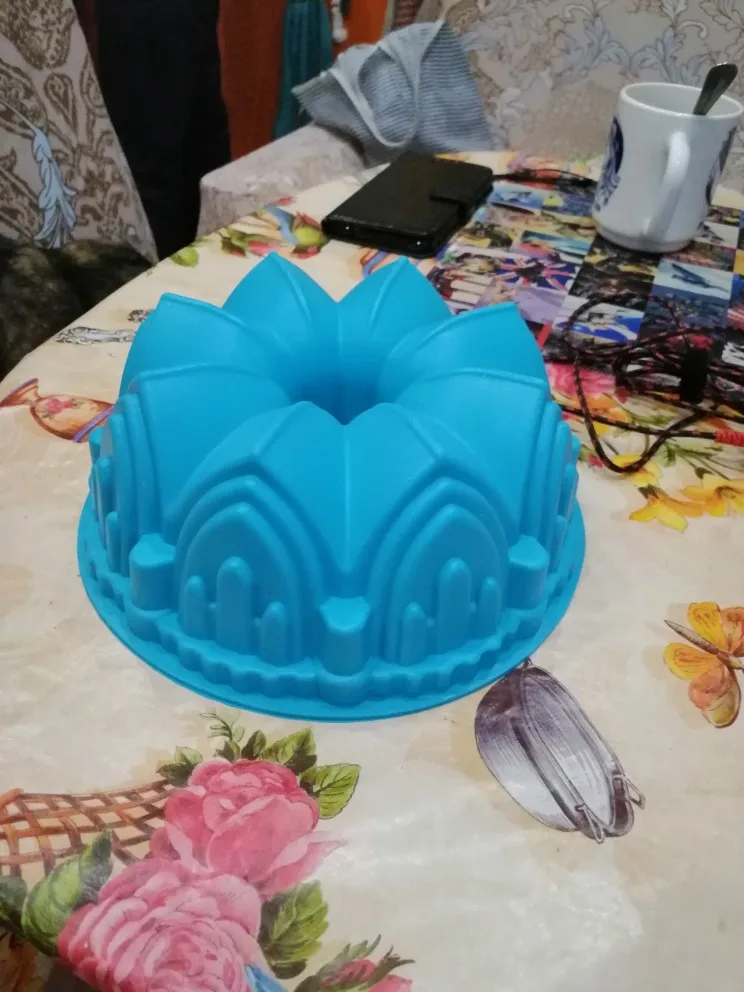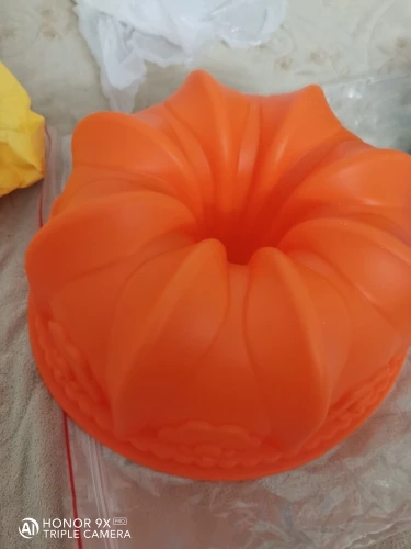 Формой очень довольна - силикон плотный, не помятый, хотя и был сложен в упаковке, но сразу ровно распрямился. Цвет рандомный, мне прислали голубой - насыщенный, красивый. Постороннего запаха не ощущается, что очень приятно удивило. После промывки формы дезинфицирующими средствами заметила, что при высыхании на внешней и внутренней поверхности образовывается легкий нестирающийся налет, на ощупь похожий на муку. Не знаю, что это, надеюсь, просто покрытие. В готовке пока не пробовала. Продавца рекомендую, доставка очень быстрая. Спасибо!