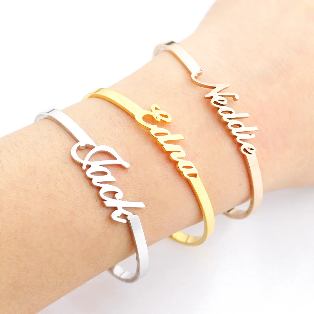 Регулируемый браслет из нержавеющей стали с именем для женщин