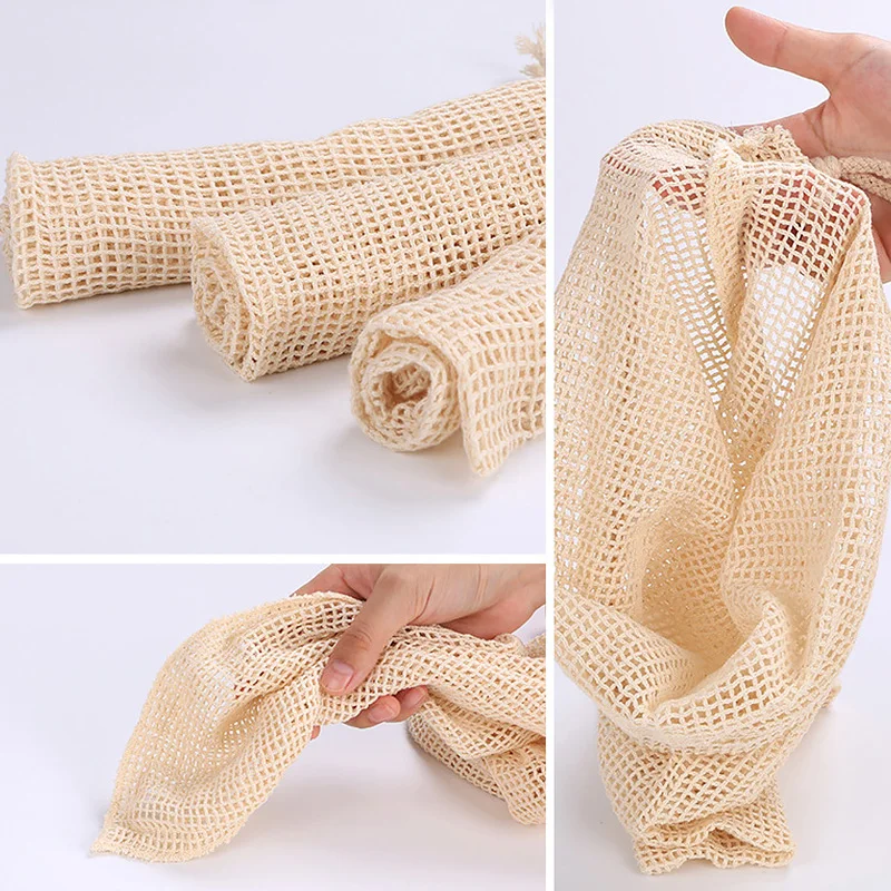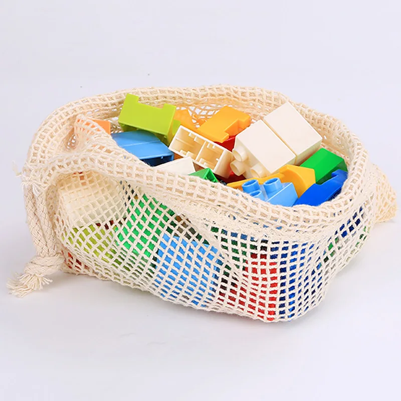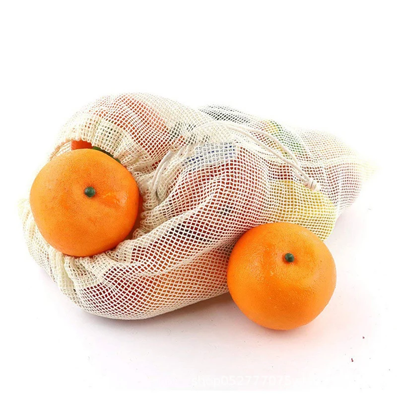 Многоразовая хлопковая Сетчатая Сумка для хранения овощей, хлопковые сетчатые мешки для овощей, сумка для продуктов, кухонная сумка для фруктов и овощей со шнурком