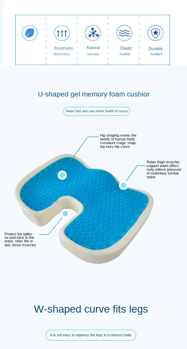 Подушка для офисного кресла, U-образная охлаждающая подушка из ортопедической гелевой пены с эффектом памяти для снятия симптомов боли в автомобиле, копчике, седалище