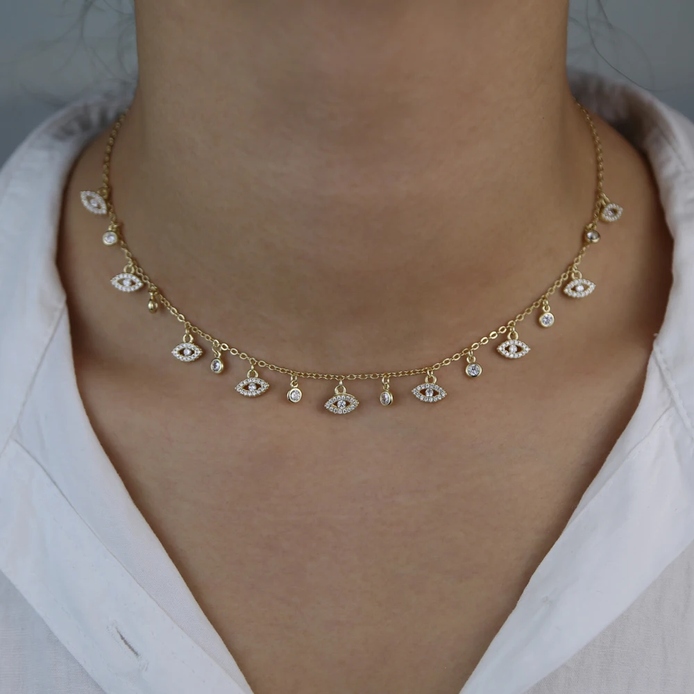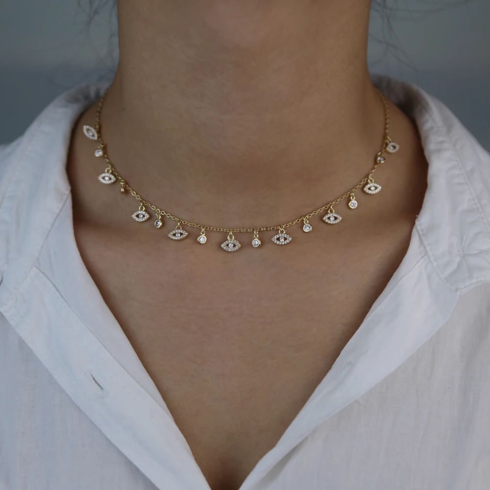 Чокер от сглаза с круглым кубическим золотом Женский, ожерелье-цвет серебра талисман с подвеской оберег на удачу, цепь с кубическим цирконием, ювелирное изделие, 2021