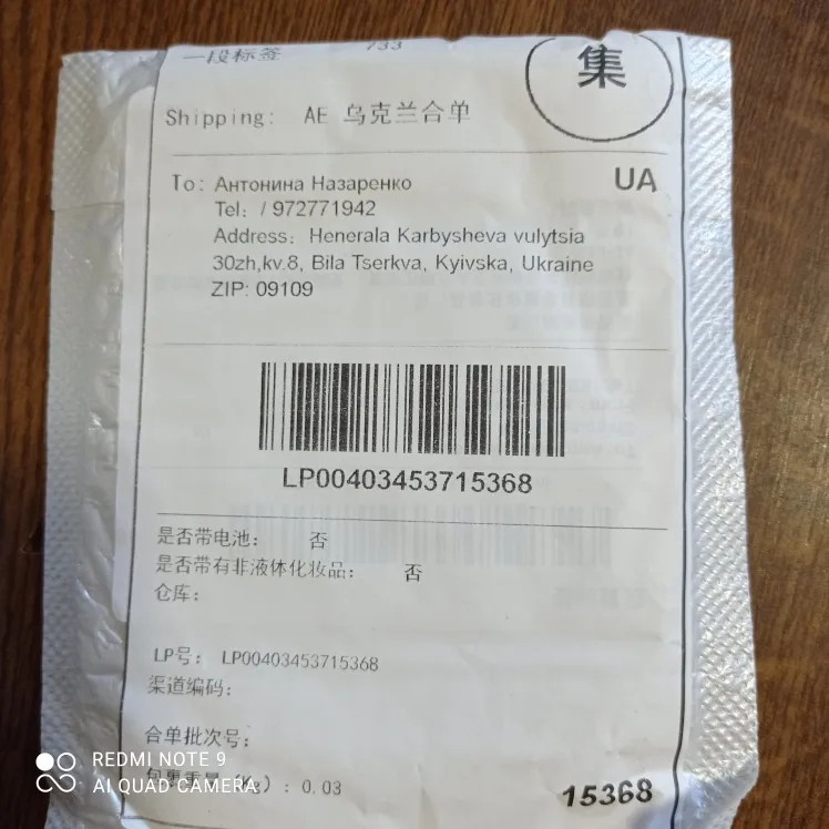 Страна: NL Доставка: Cainiao Super Economy Global 10.12.2020