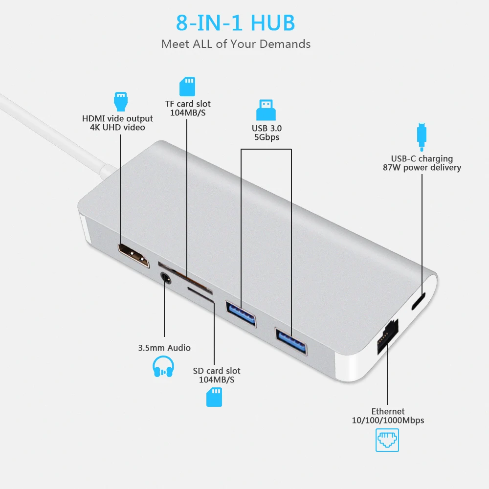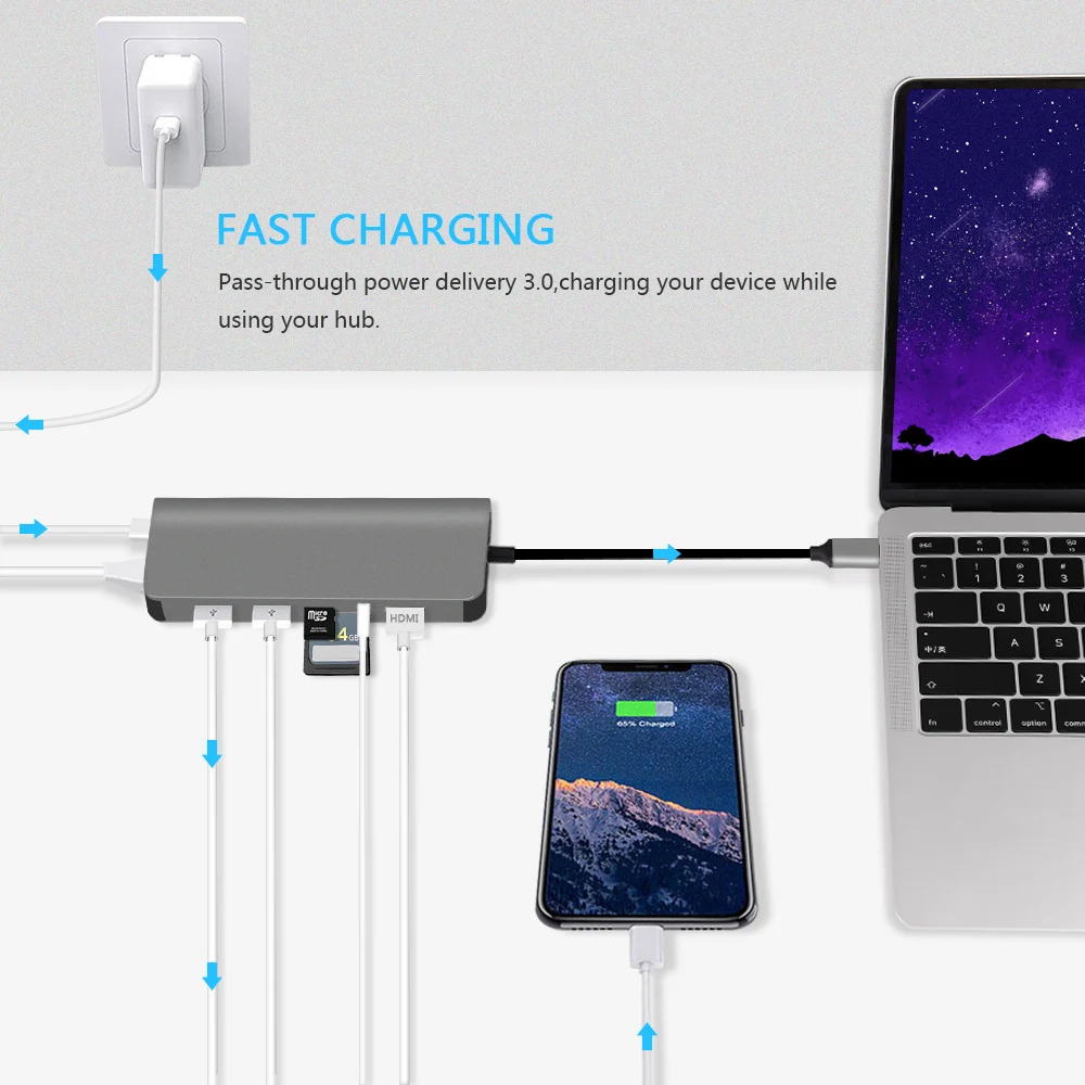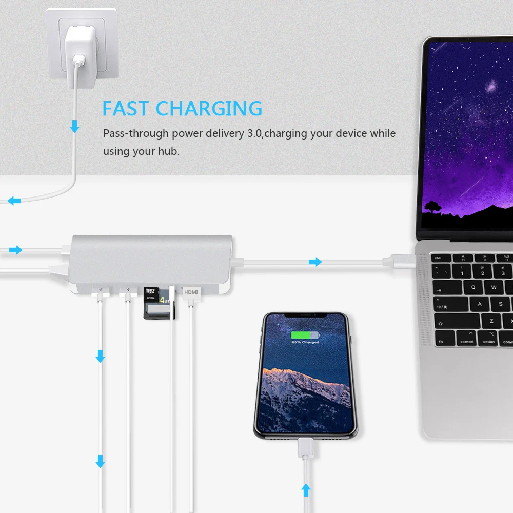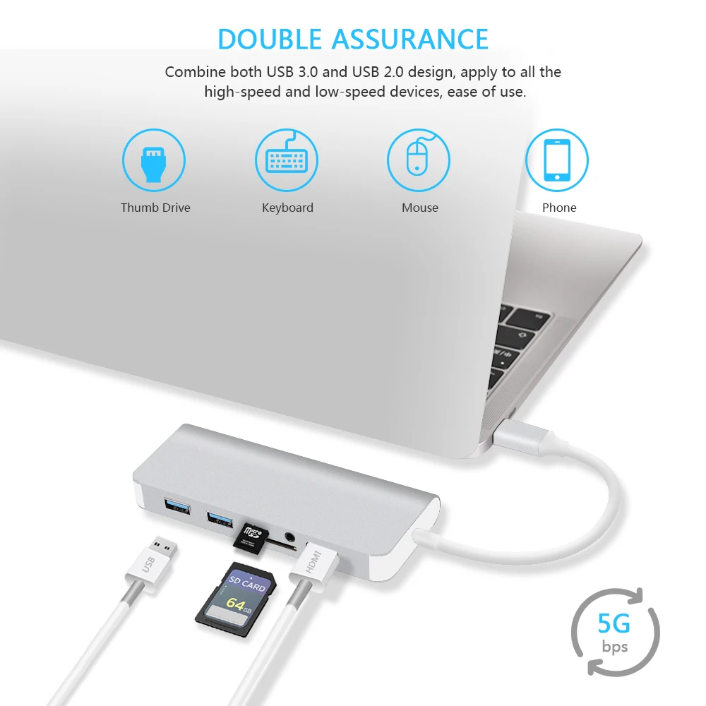 Многофункциональный адаптер Redlai для USB 3,0 HDML для MacBook Pro Air 13 15 16 дюймов 2020 2019 2018 A2179 USB C Type-C HUB