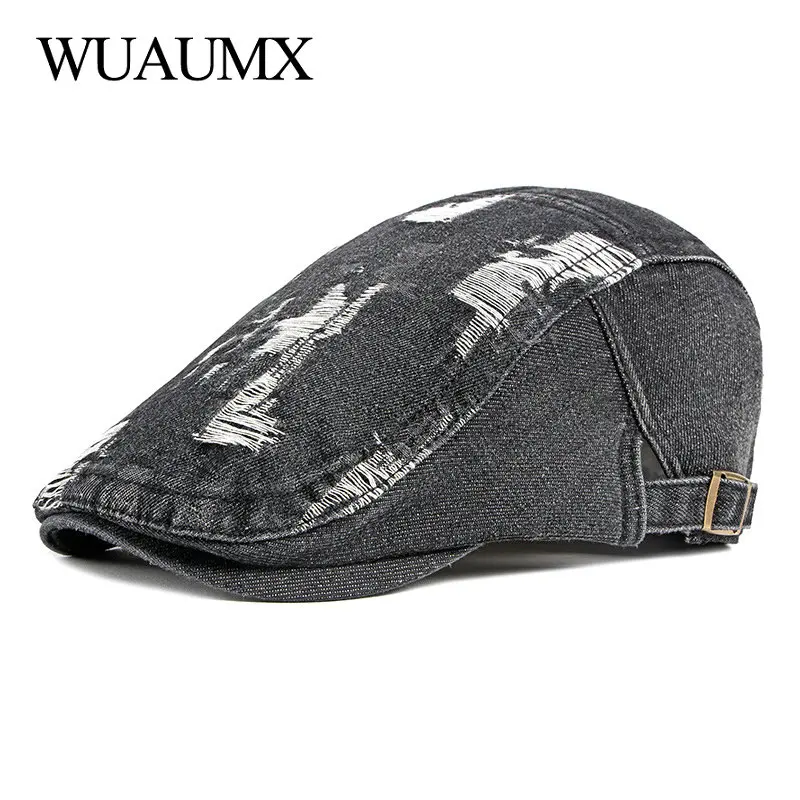 Повседневные мужские шапки Wuaumx в стиле ретро, весенне-летние джинсовые береты, женская шапка из мытого хлопка, с изображением утконоса, плоские шапки в елочку