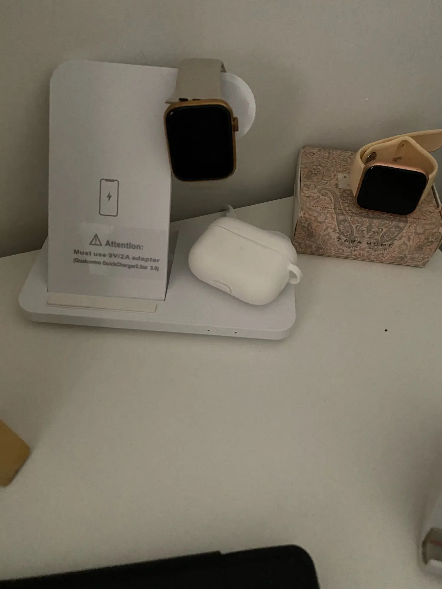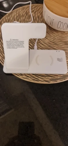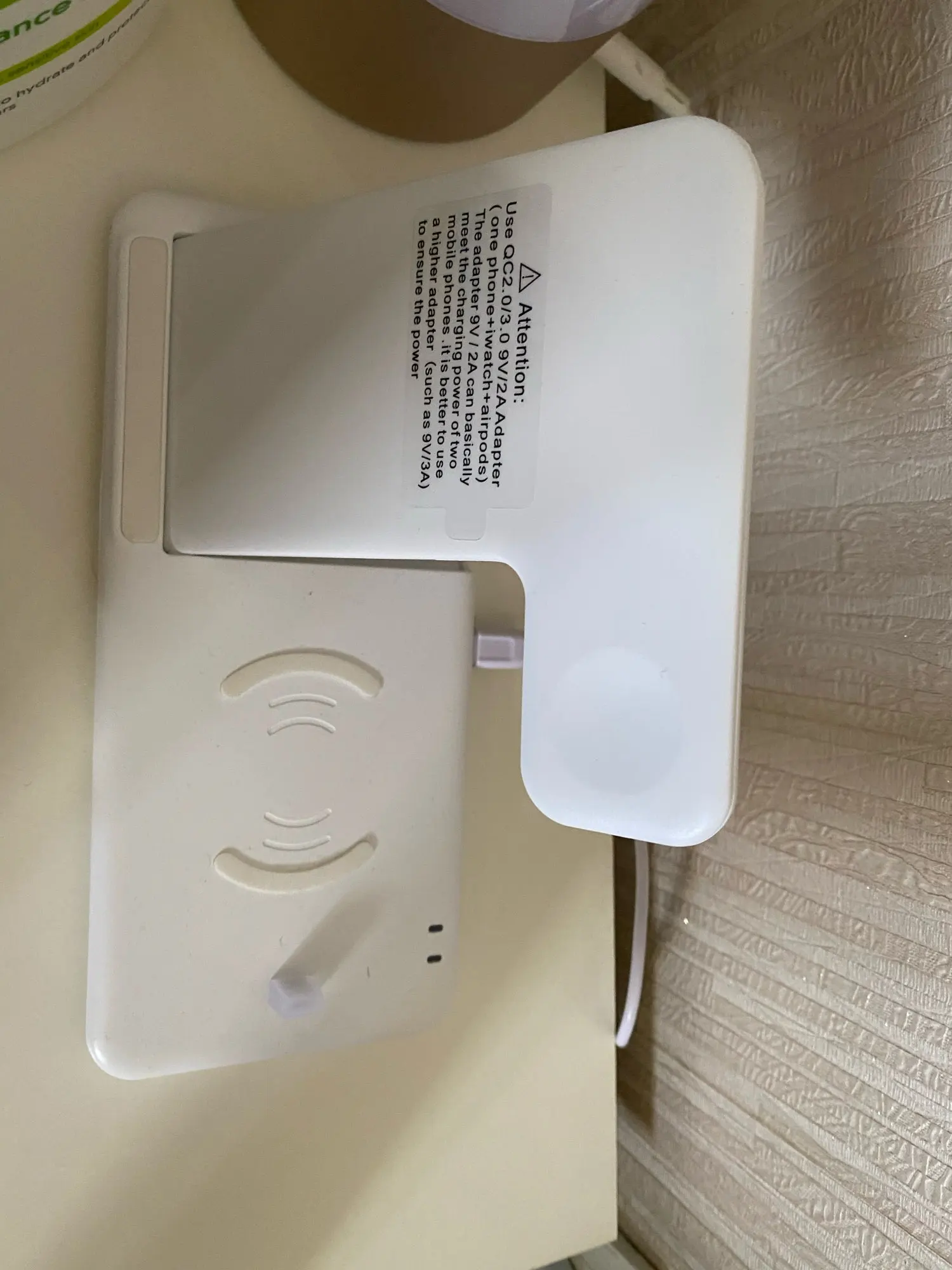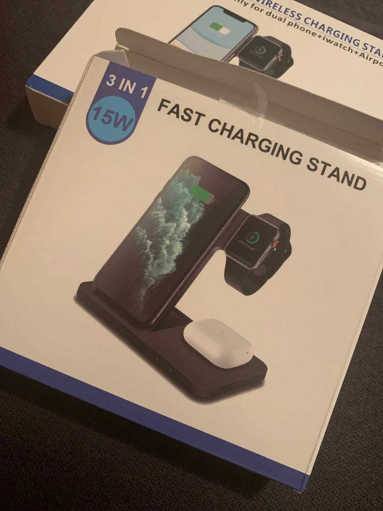 Отлично работает с iPhone 12, AirPods Pro и часами. Маленький синий свет при зарядке, слишком плохо, что не в состоянии снять его для черной ночи.