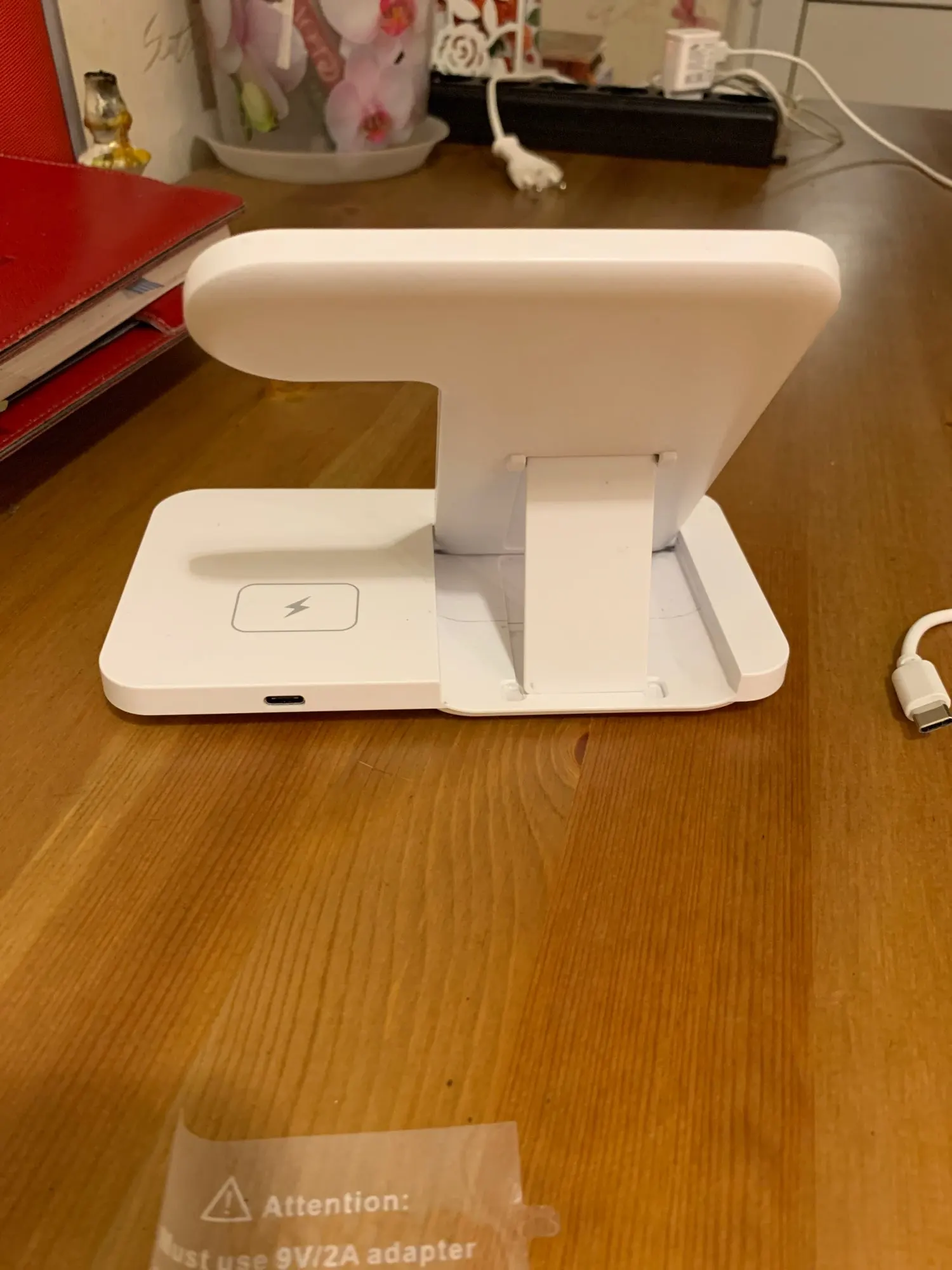 Зарядное устройство, которое превращает любую ночнушку в будильник. Активируйте функцию в вашем телефоне, откройте подставку, и вы закончите с помощью только одного кабеля (к usb-розетке) для 4 устройств. Заряжается быстро, выглядит красиво и идеально, чтобы взять с собой, так как складывается полностью плоско! Настоятельно рекомендуем! Супер быстрая доставка!