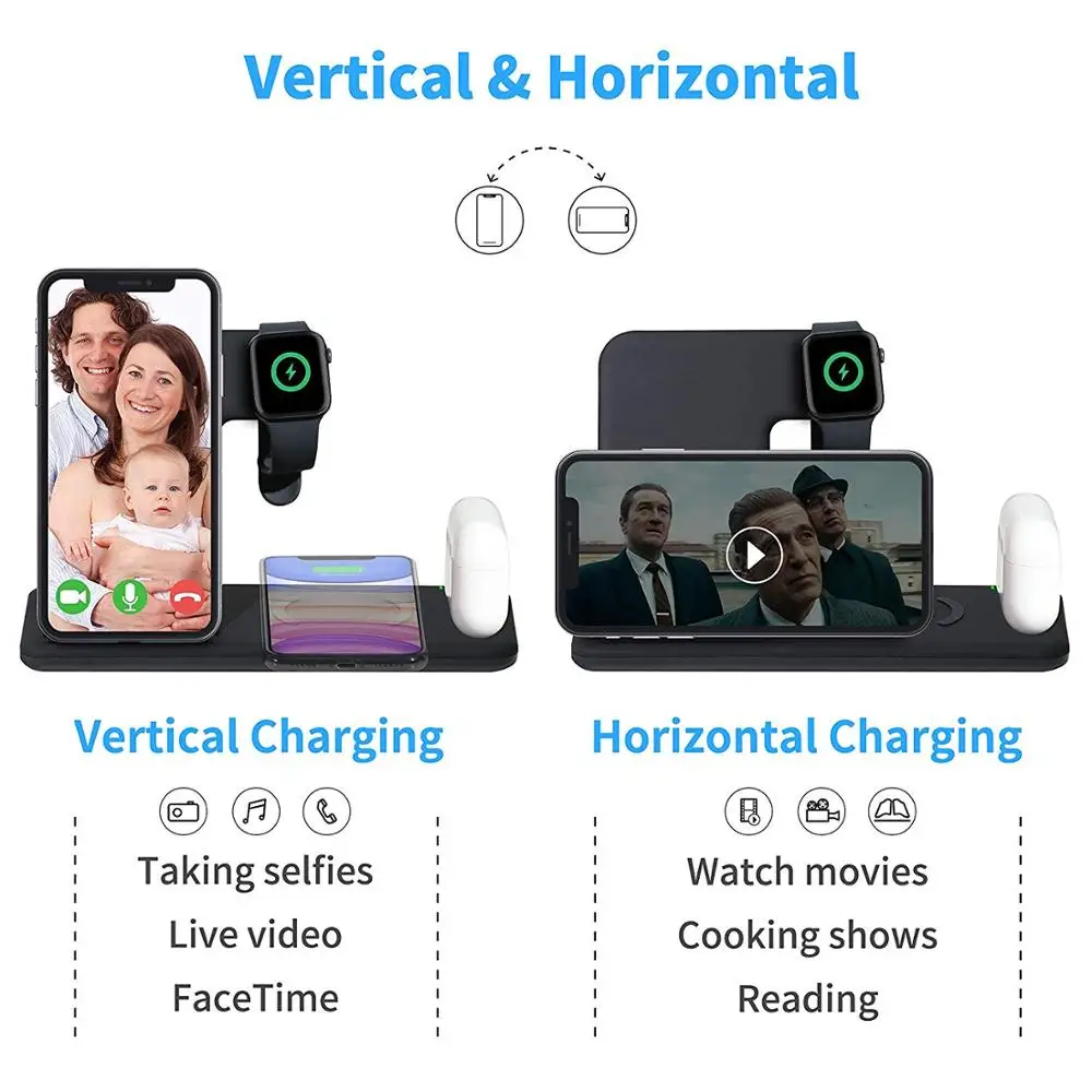 Беспроводное зарядное устройство 4 в 1 для iPhone 13, 12, 11, XS, XR, X, 8, Apple Watch SE 6, 5, 4, 3, Airpods Pro, 15 Вт