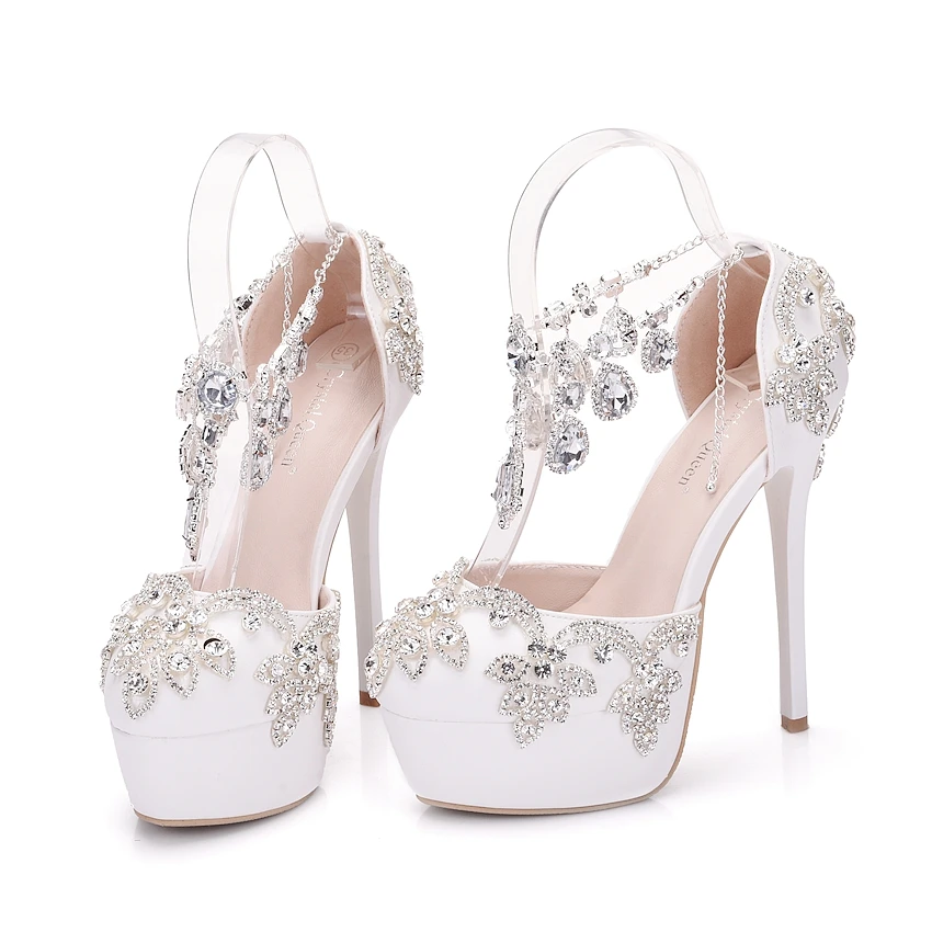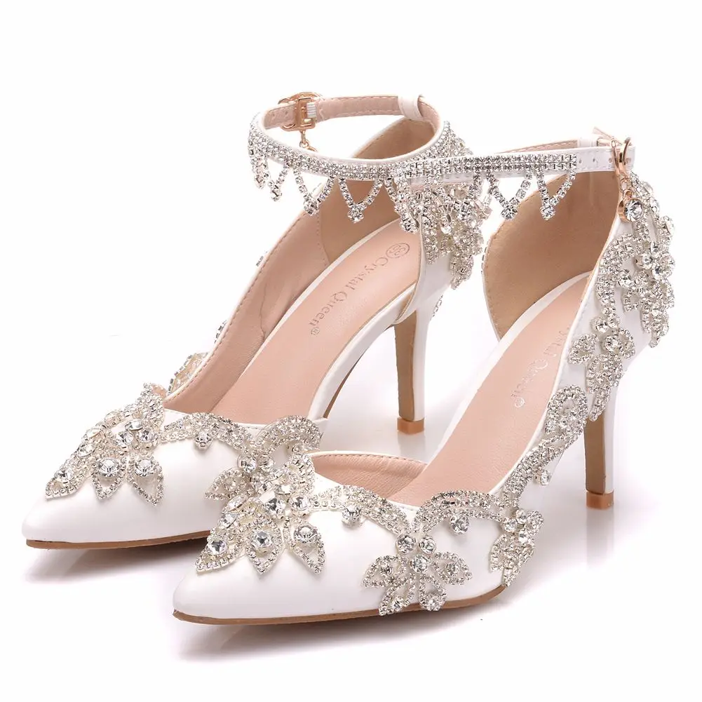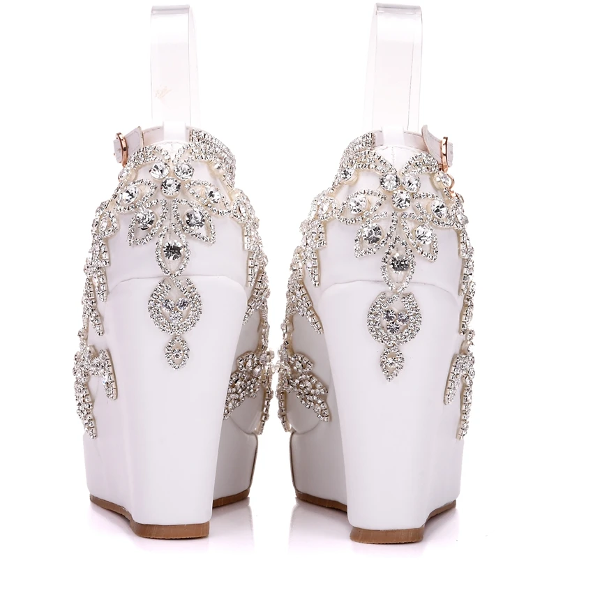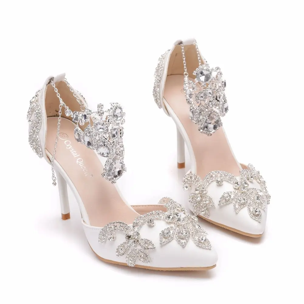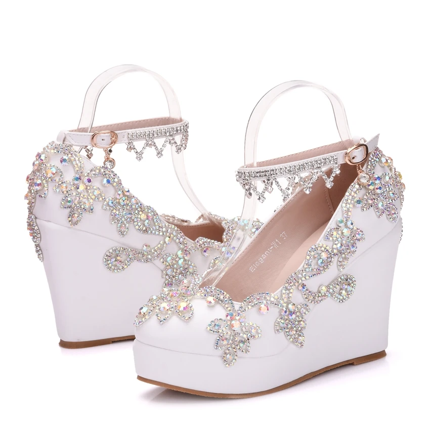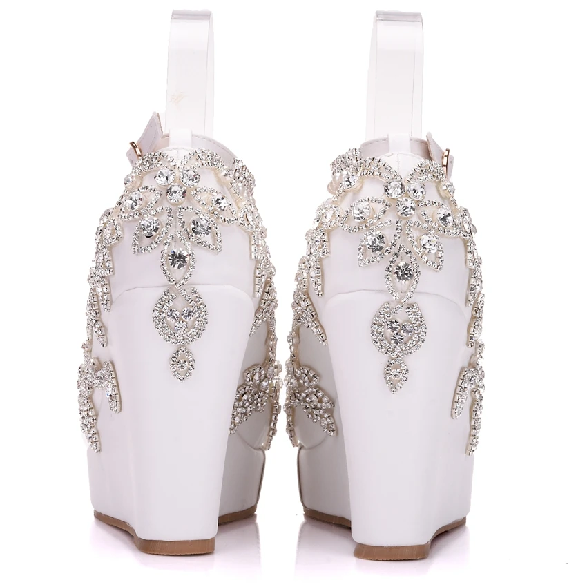 Женские белые туфли со стразами; Браслет с кисточкой Свадебные туфли; Туфли для невесты; Босоножки на высоком каблуке; Женские модельные туфли-лодочки на танкетке