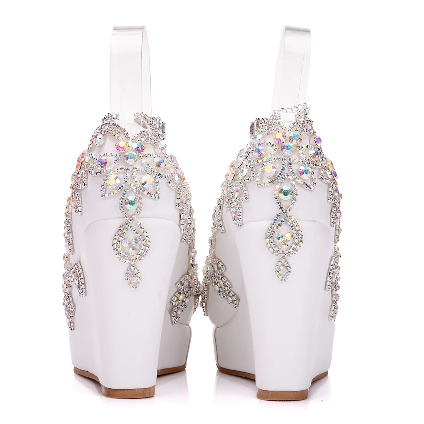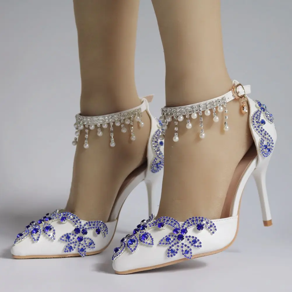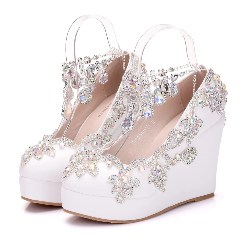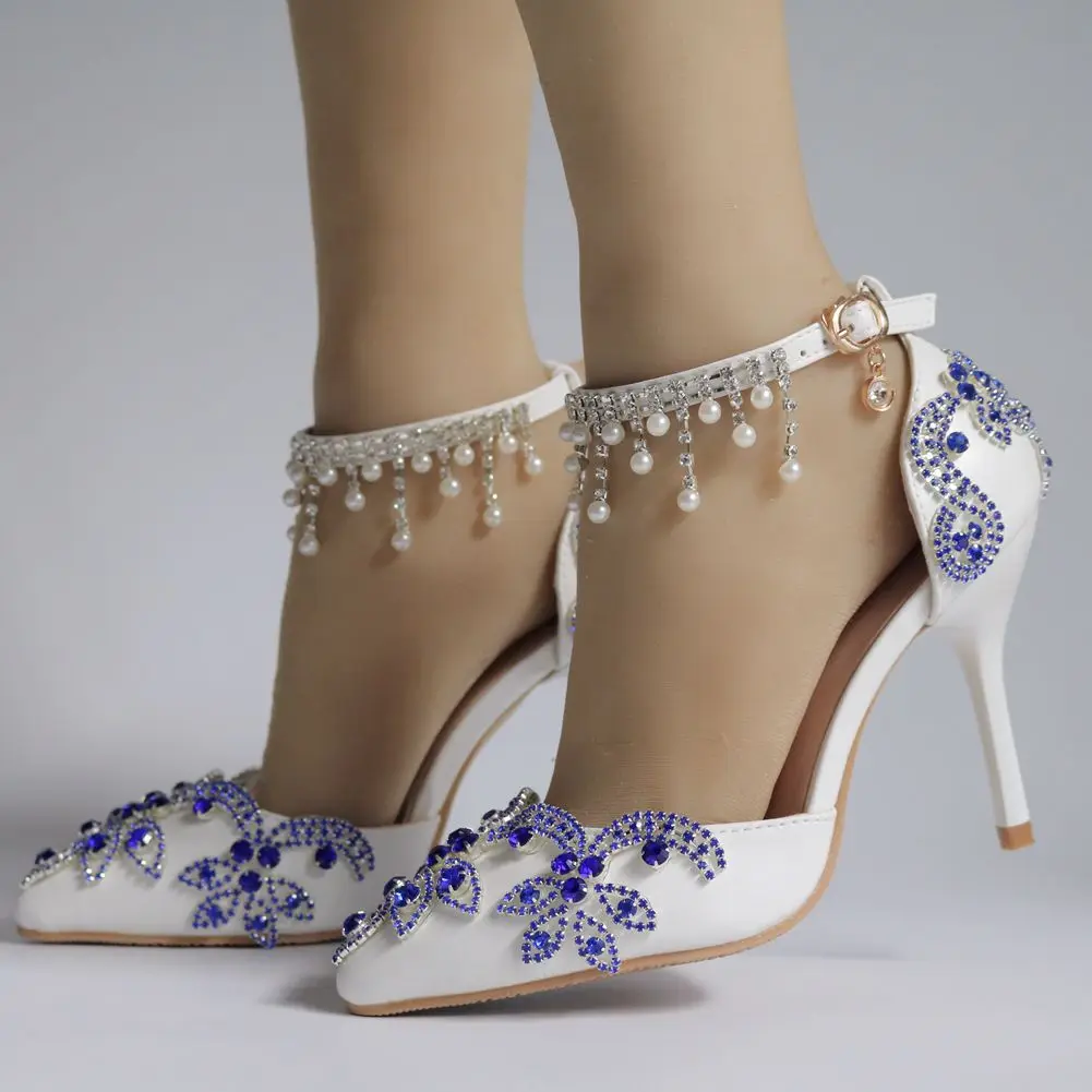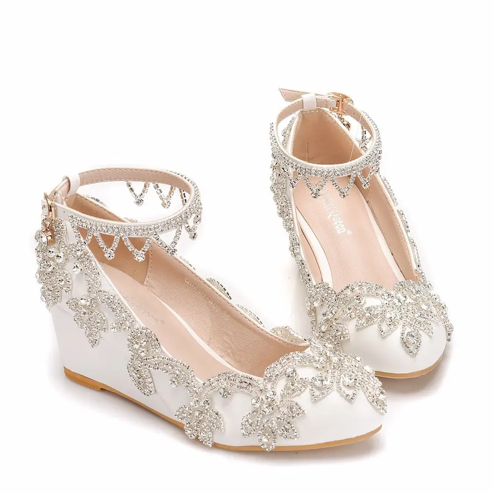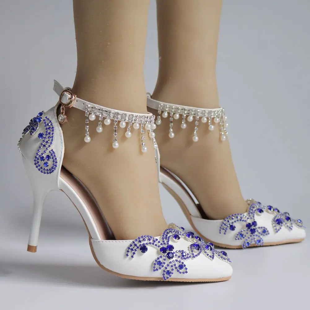 Женские белые туфли со стразами; Браслет с кисточкой Свадебные туфли; Туфли для невесты; Босоножки на высоком каблуке; Женские модельные туфли-лодочки на танкетке