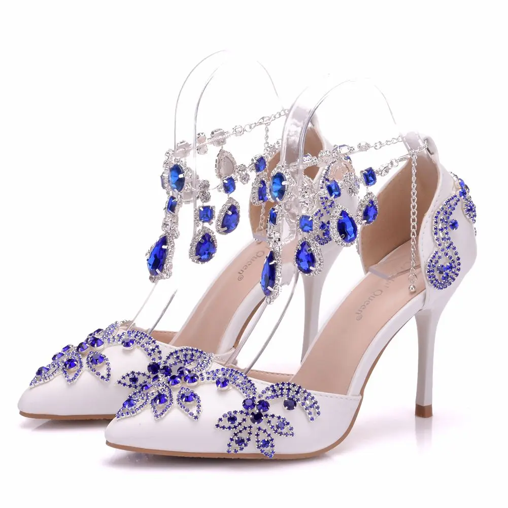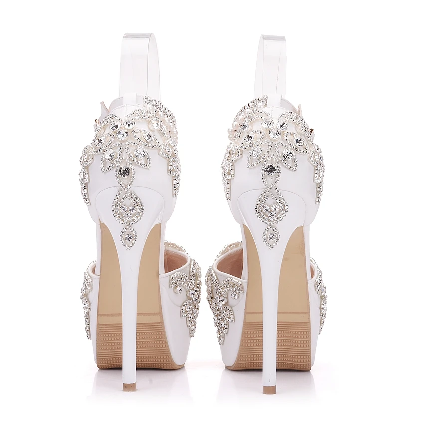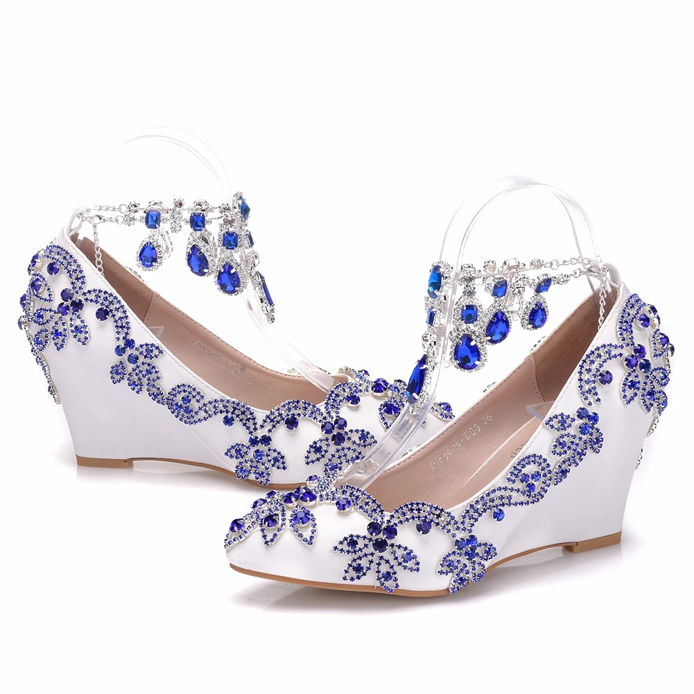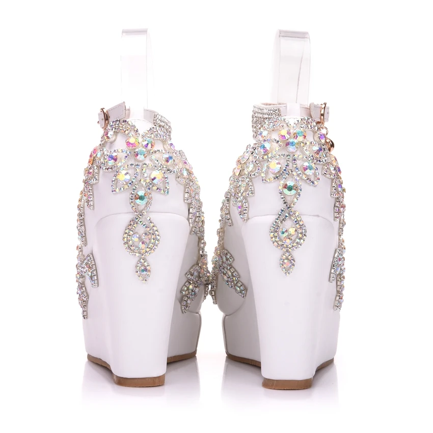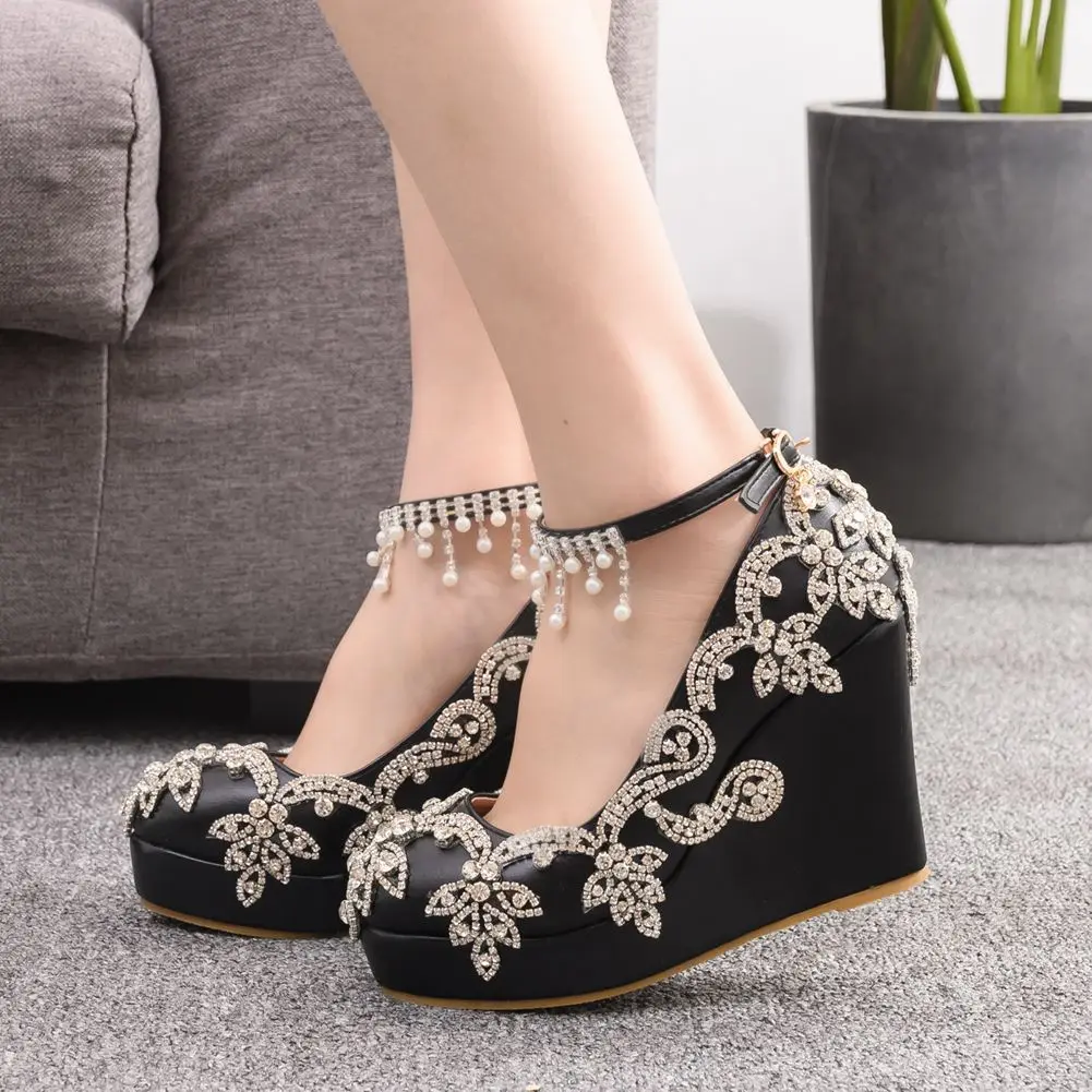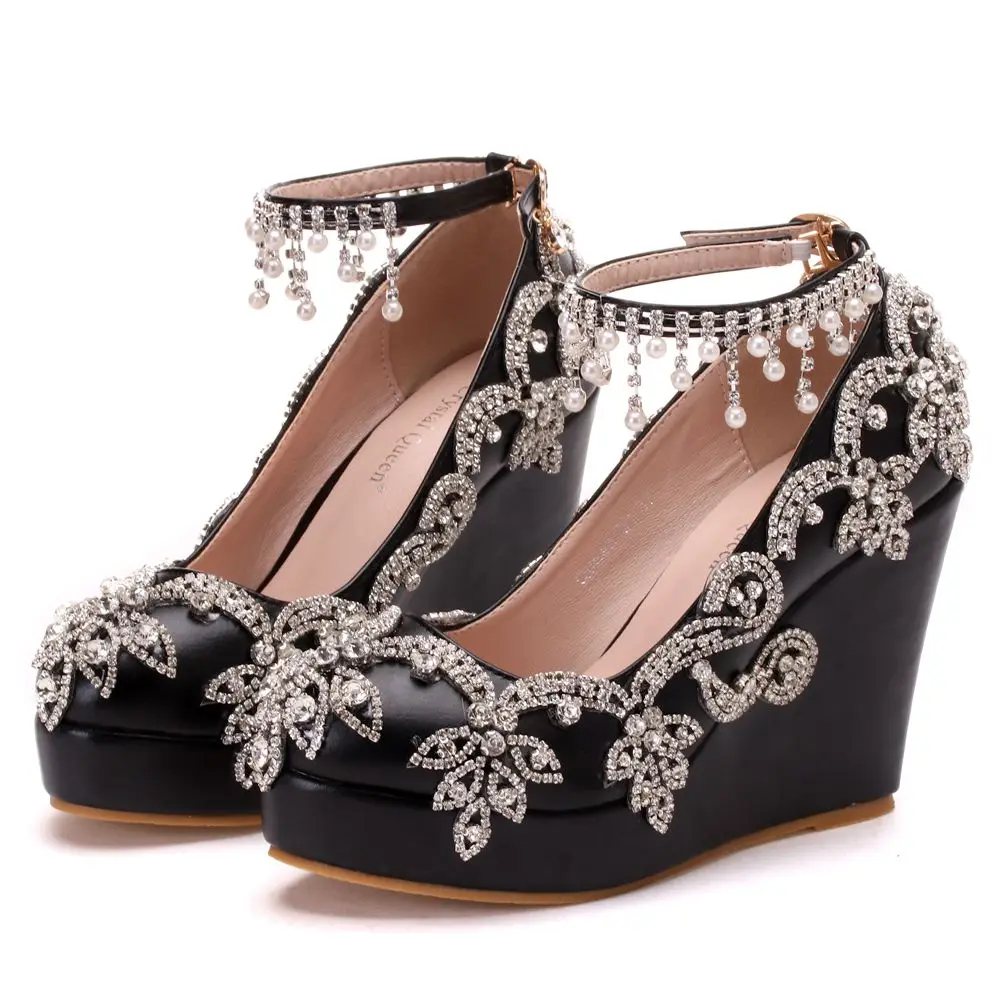 Женские белые туфли со стразами; Браслет с кисточкой Свадебные туфли; Туфли для невесты; Босоножки на высоком каблуке; Женские модельные туфли-лодочки на танкетке