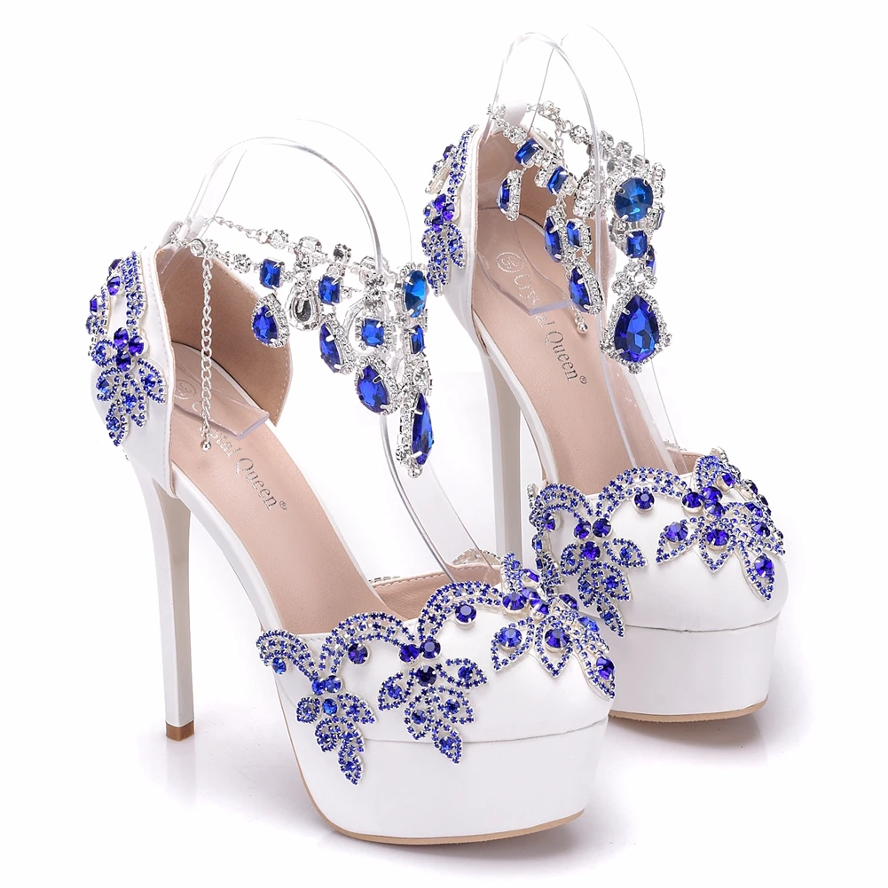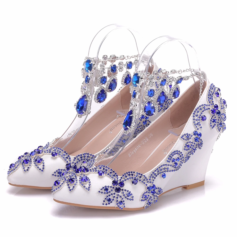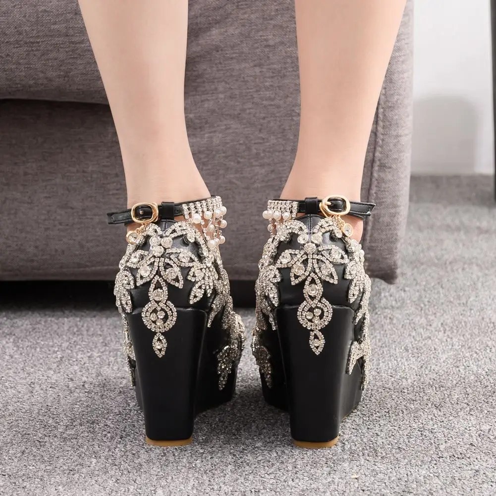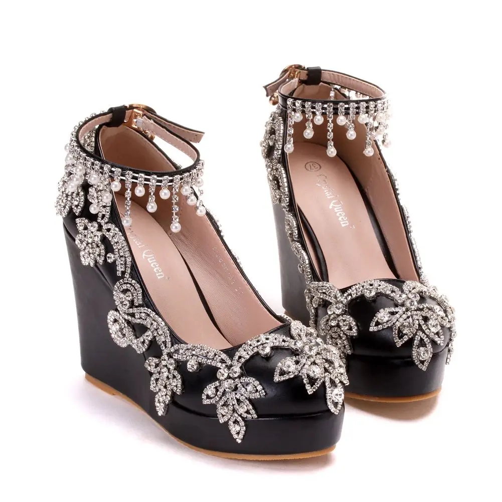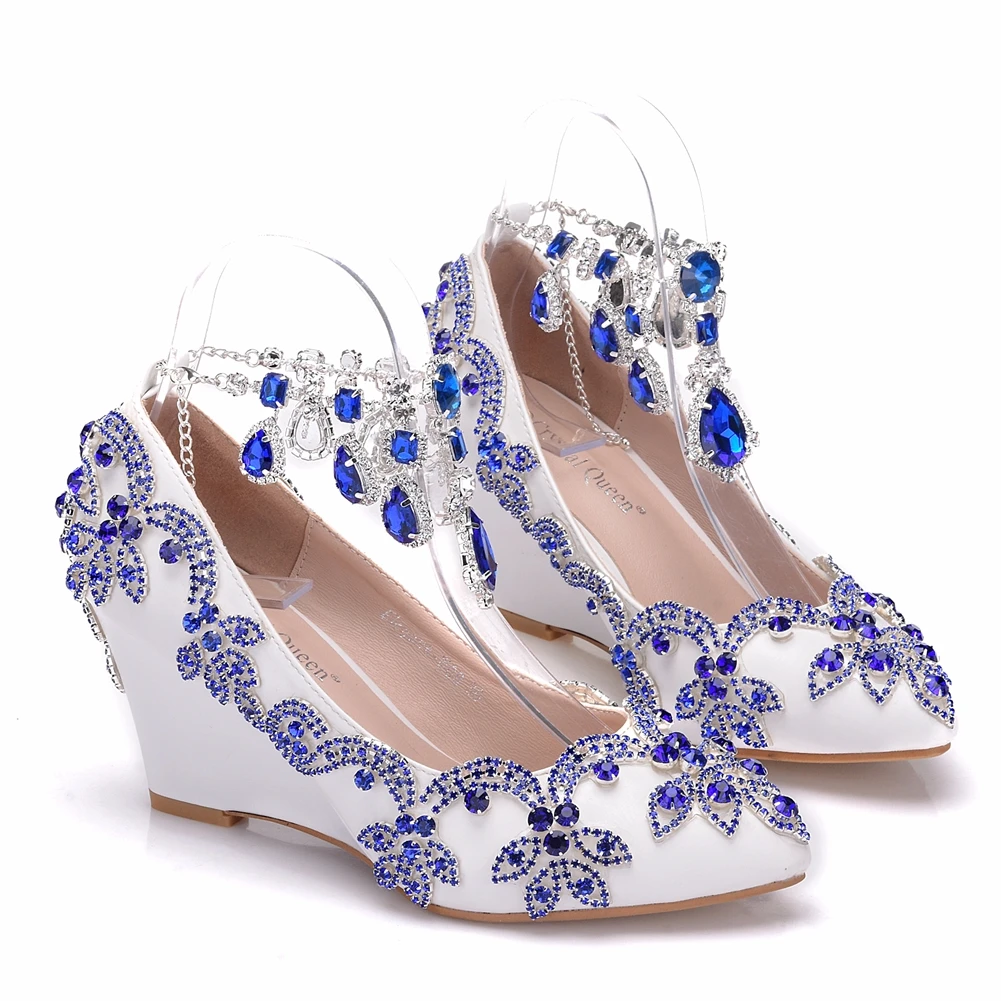 Женские белые туфли со стразами; Браслет с кисточкой Свадебные туфли; Туфли для невесты; Босоножки на высоком каблуке; Женские модельные туфли-лодочки на танкетке