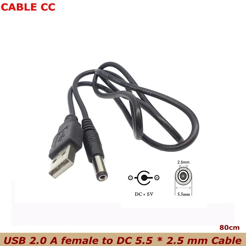 0,8 м USB 2.0 тип A штекер до 5 5 мм DC 5,5 мм 2,5 мм штекер питания Цилиндрический разъем 5 в кабель постоянного тока