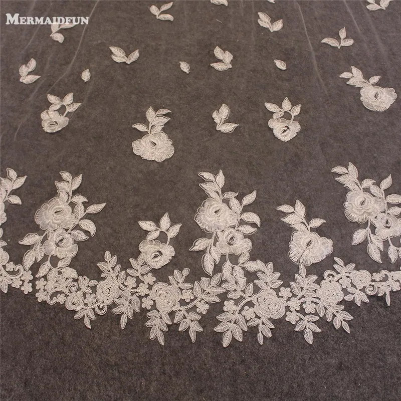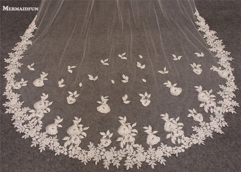 4 метра белыйслоновая кость один слой Красивая Соборная длина круже...
