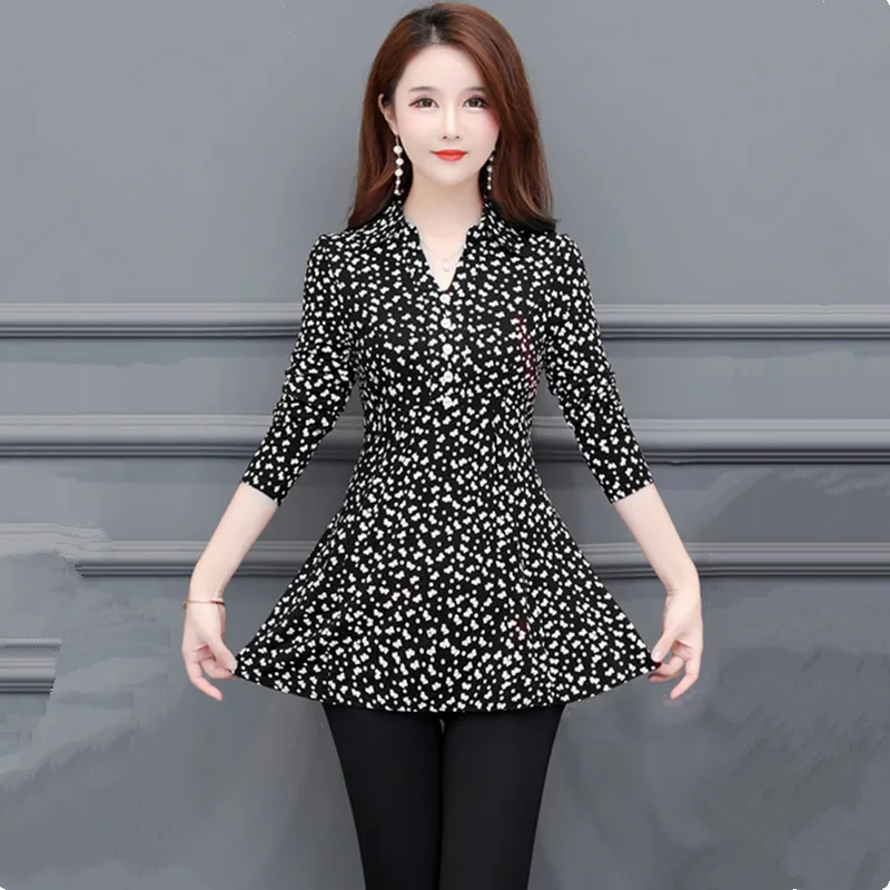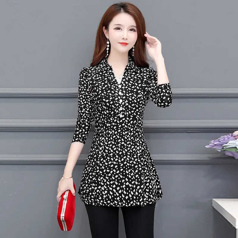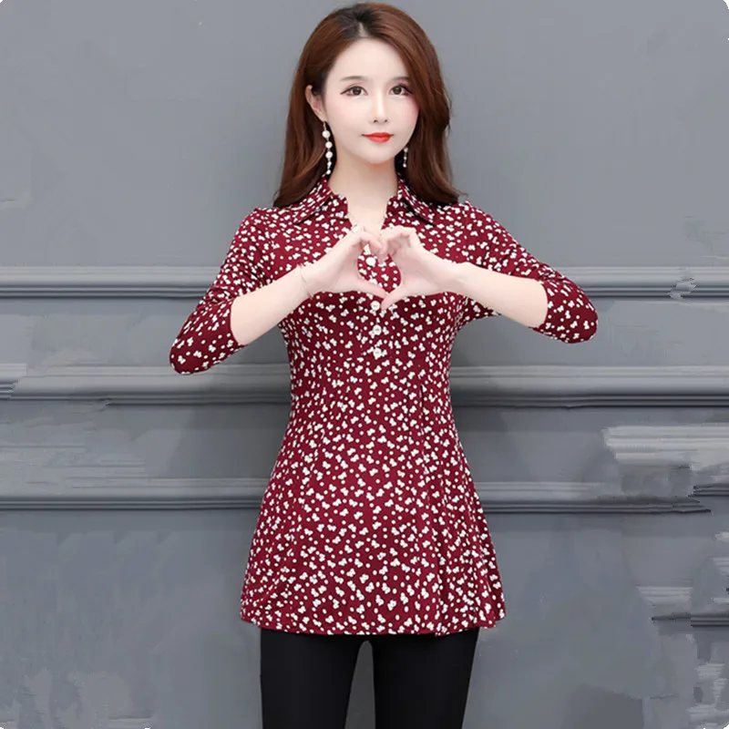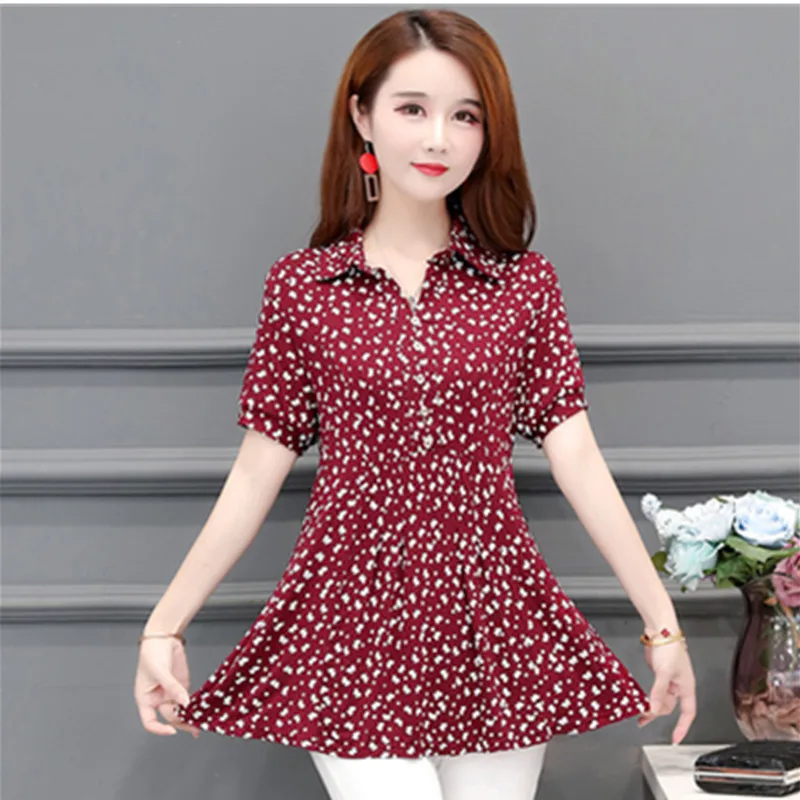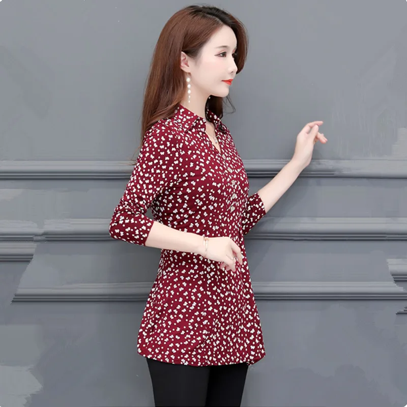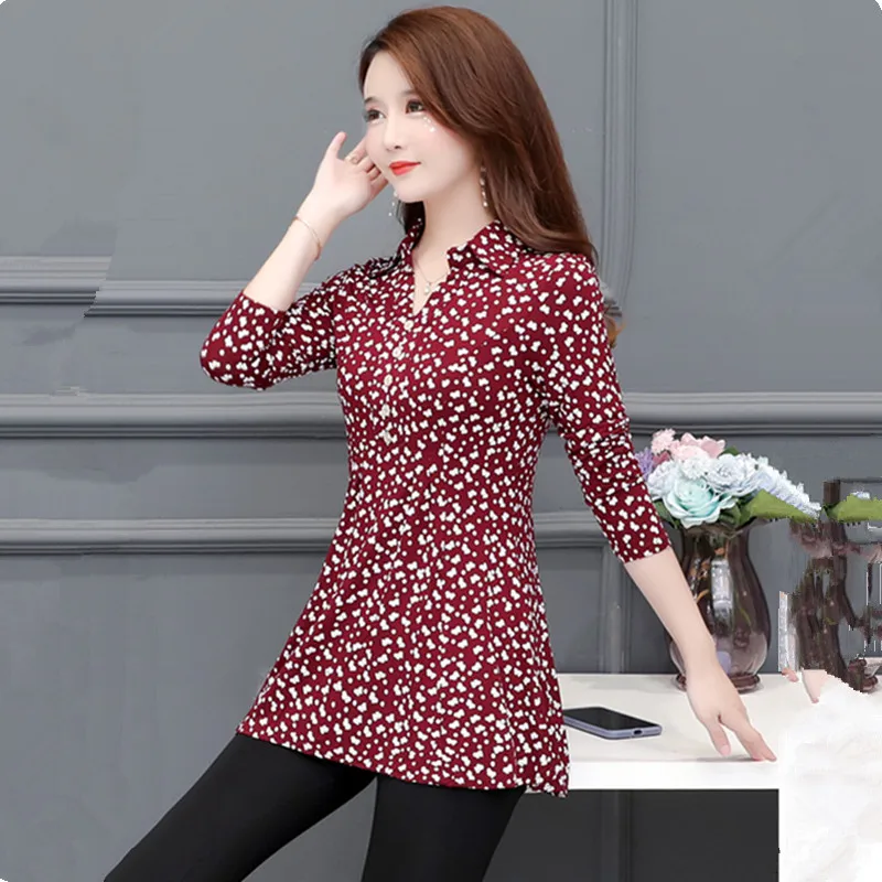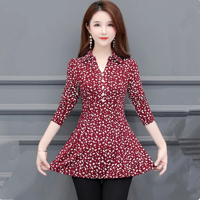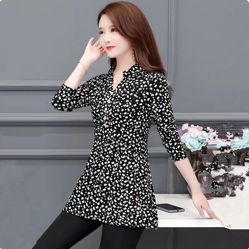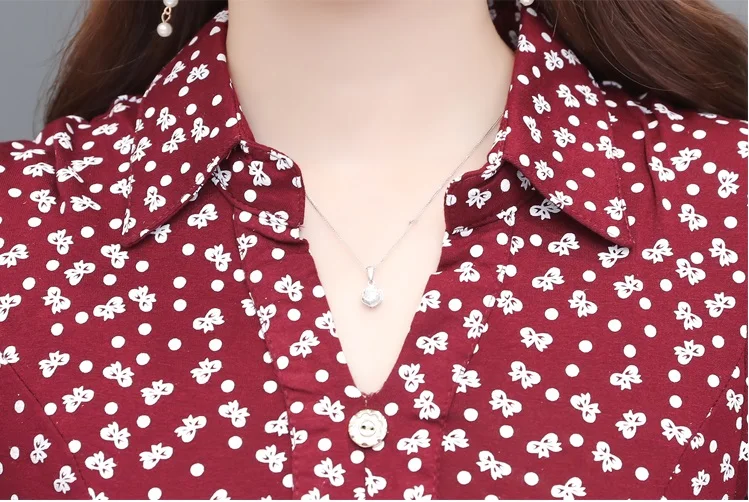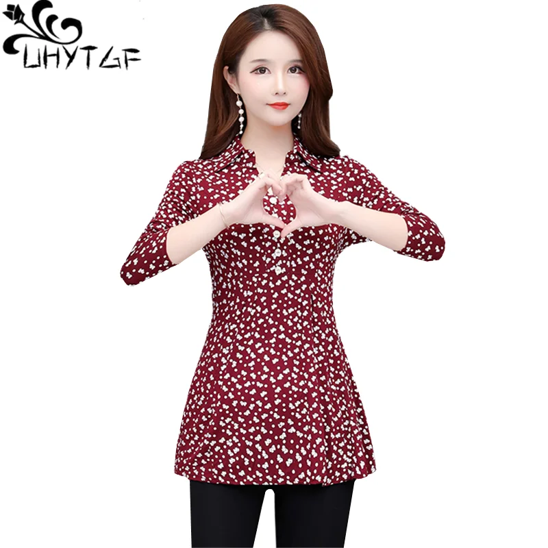 UHYTGF 2020 женские шифоновые блузки с длинным рукавом V-образным вырезом тонкая весенняя рубашка женская в горошек мягкая 5XL размера плюс Топ рубашка Женская 1001