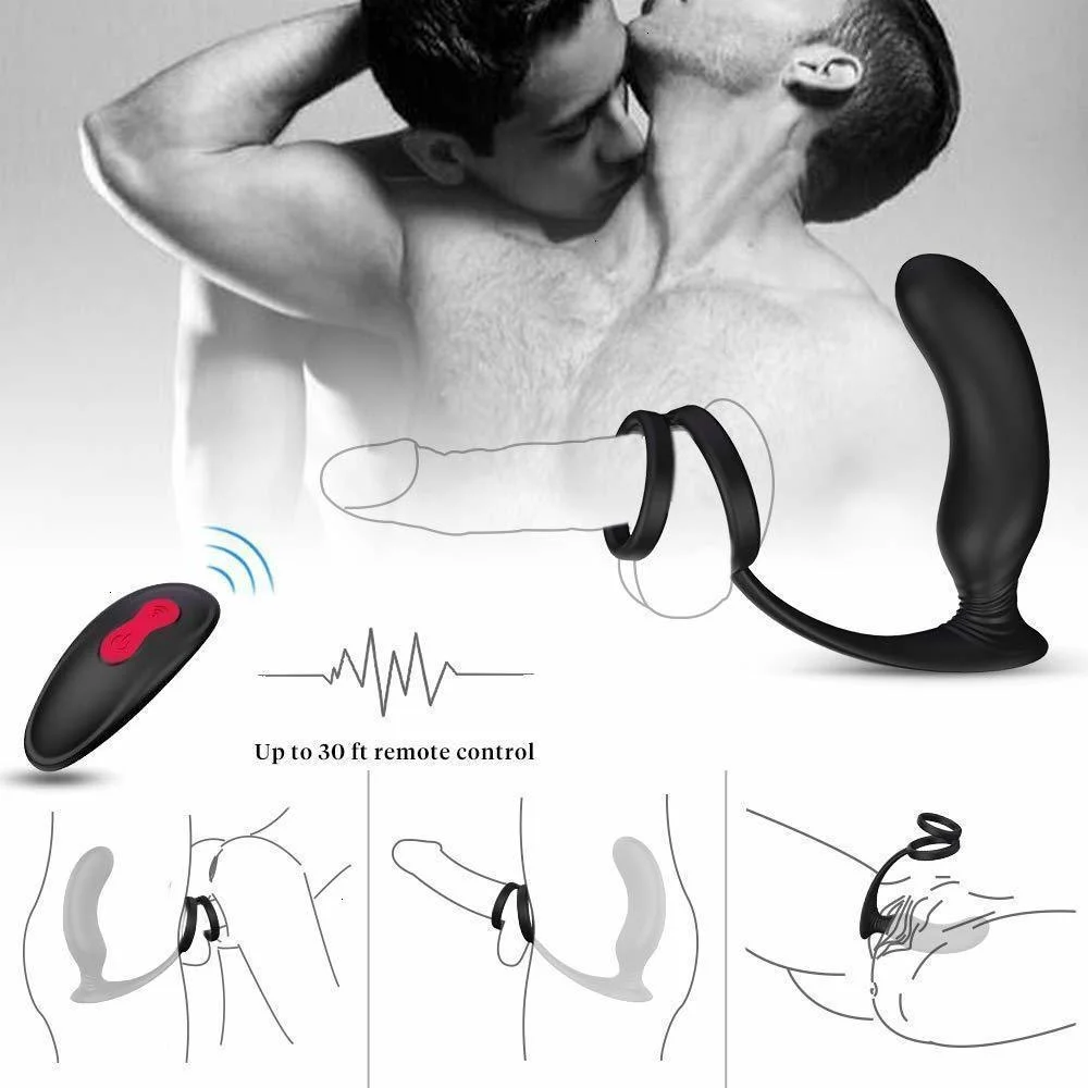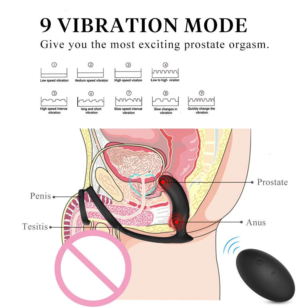 Анальные секс-игрушки массажер простаты мужские Вибраторы-пенисы кольцо 9-Вибрационный Режим беспроводной пульт дистанционного управления Вибратор перезаряжаемый водонепроницаемый P-spot вибрационный для мужчин и пар.