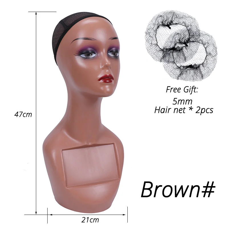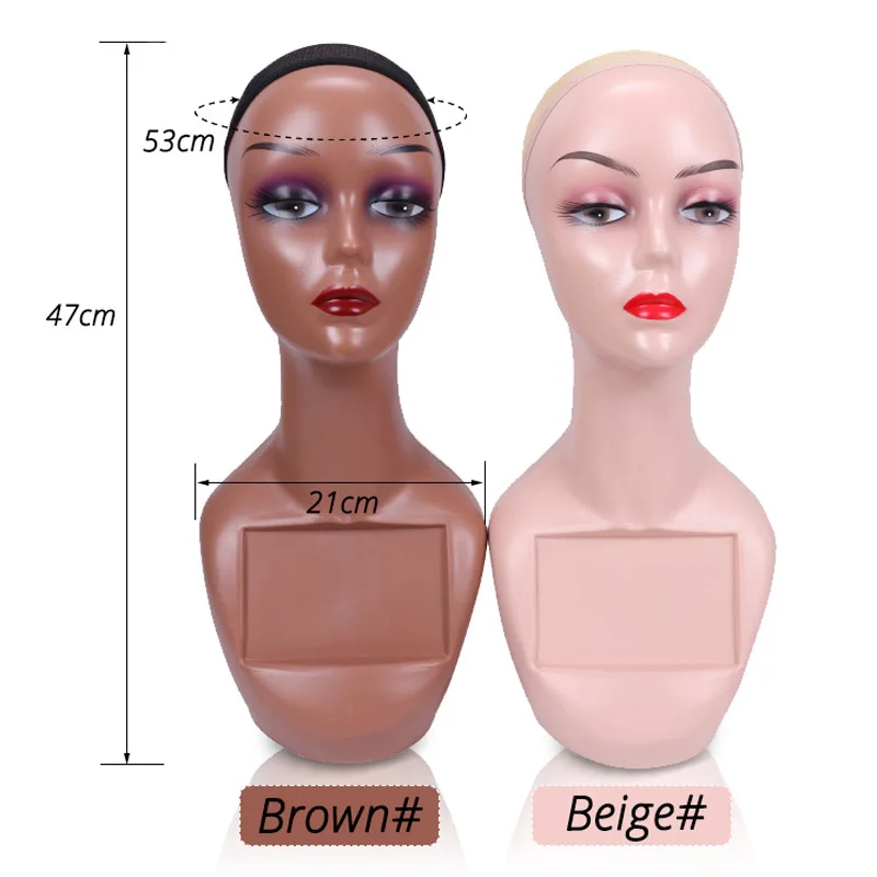 Эта голова манекена идеально подходит для демонстрации париков, шляп, украшений и шарфов.Манекен состоит из линии лица, плеч и груди.Изготовлен из высококачественного ПВХ, он прочный и не сломается во время падений.Манекен имеет бежевый/кожа/темно-коричневый цвет, ресницы, брови и визажиста для реалистичного вида.Высота: 47 см. Ширина: 21 см. Окружность головы: 52 см.