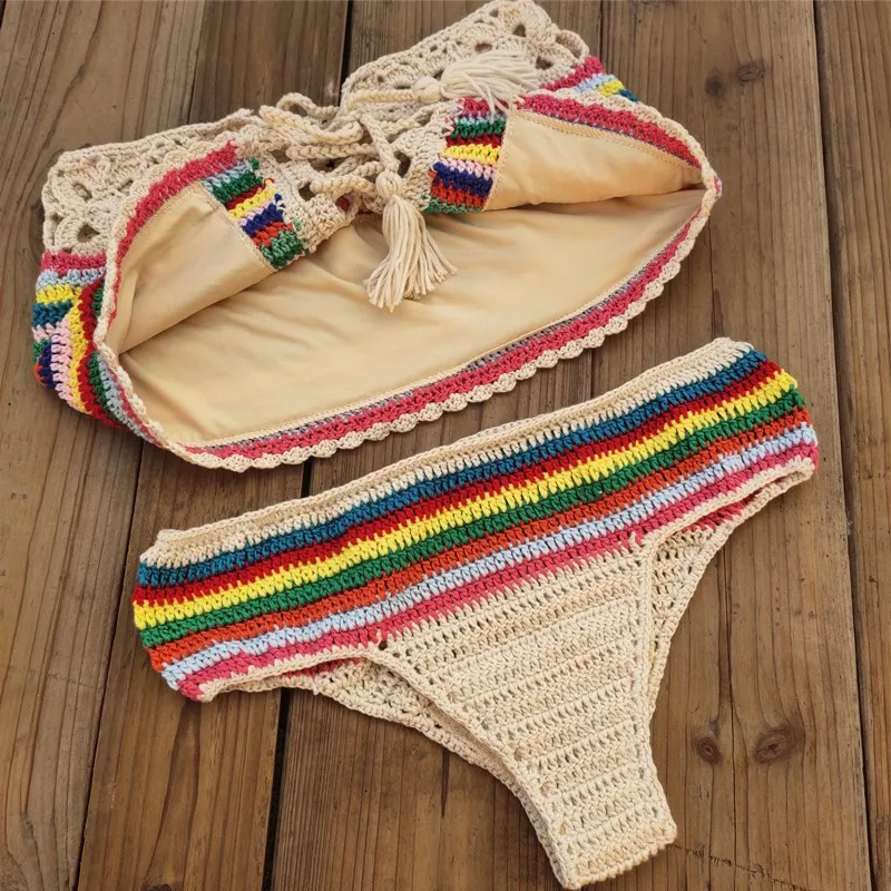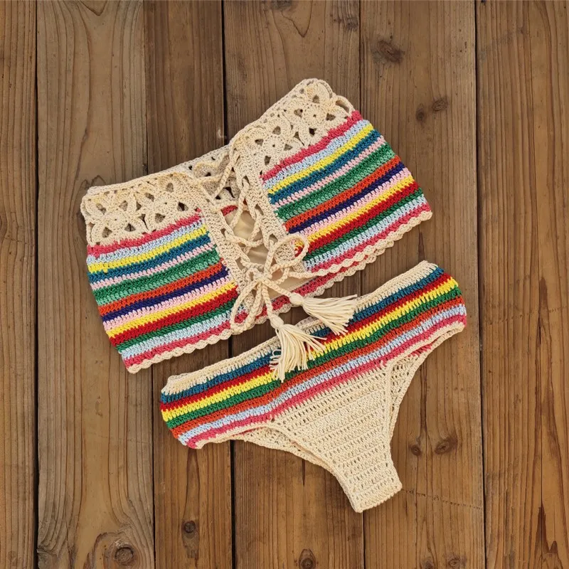 Новинка 2020, Женский трикотажный купальник ручной работы, Радужный купальный костюм