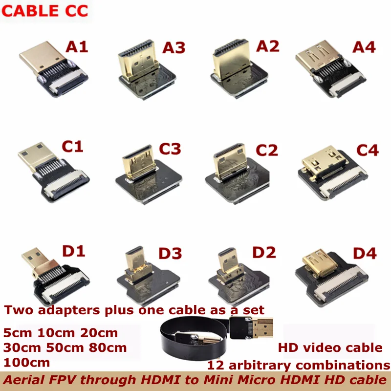 FPV Micro HDMI Mini HDMI 90 градусов адаптер 5-100 см FPC плоский HDMI кабель шаг 20pin для мультикоптера аэрофотосъемки