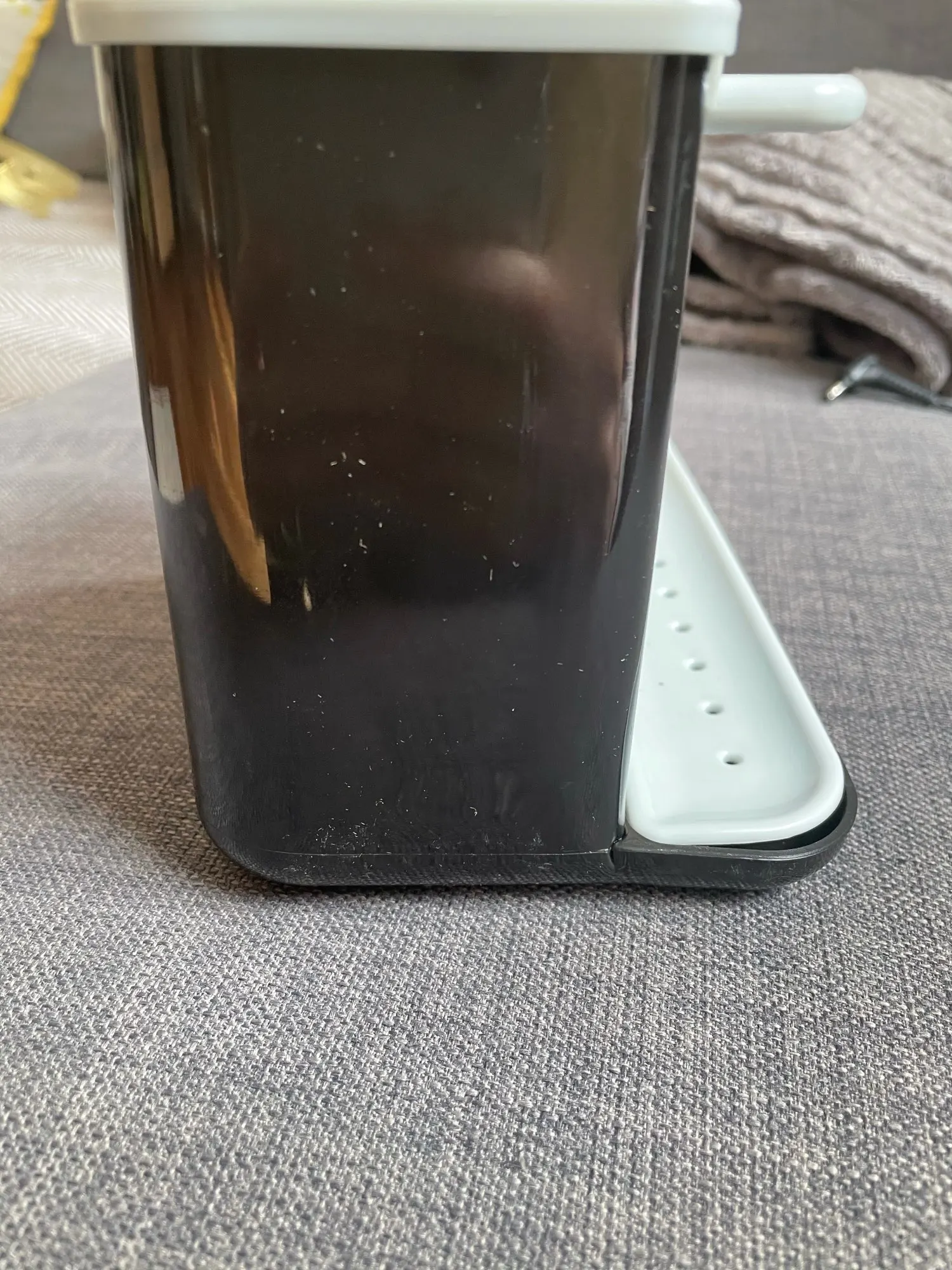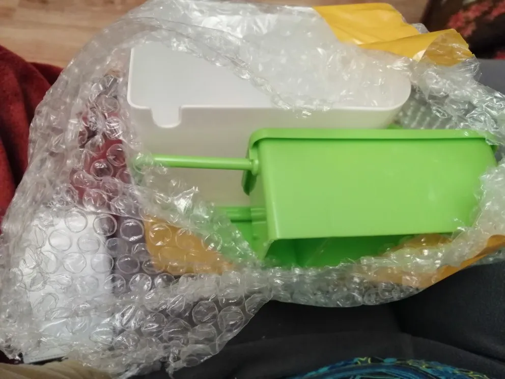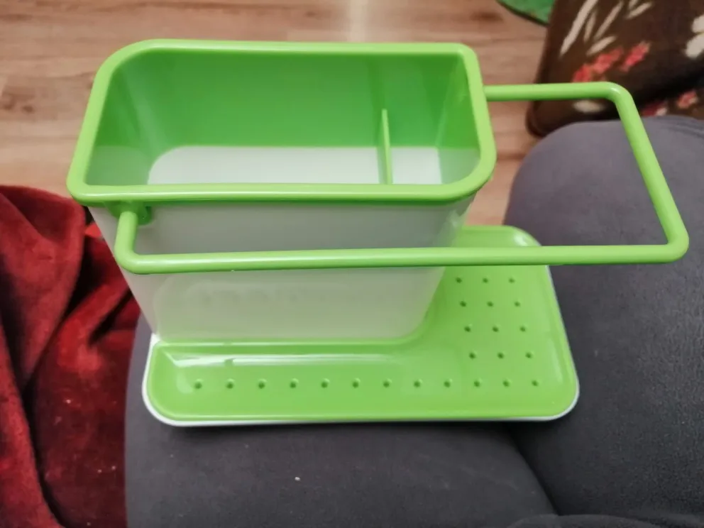 Товар пришёл за одну неделю. Продавец красавчик - отправил быстро. Трек отслеживался. Упаковано в пупырчатую пленку. По качеству товар на троечку. По краям облой, который даже не умудрились срезать. Пришлось самому срезать канцелярским ножом. Все какое-то кривое - сам стакан, перекладина для тряпки, сам поддон для тряпки тоже весь кривой. На фото смотрелось красивее. Вживую - смотрите сами на фото. Ценник явно завышен. Красная цена 150-200 рублей. Не рекомендую к покупке.